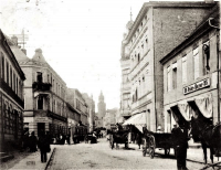 Lata 1900-1920 , Łokietka w kierunku Baszty. Obecnie po prawej stronie znajduje się galeria Starówka.Skomentuj zdjęcie |