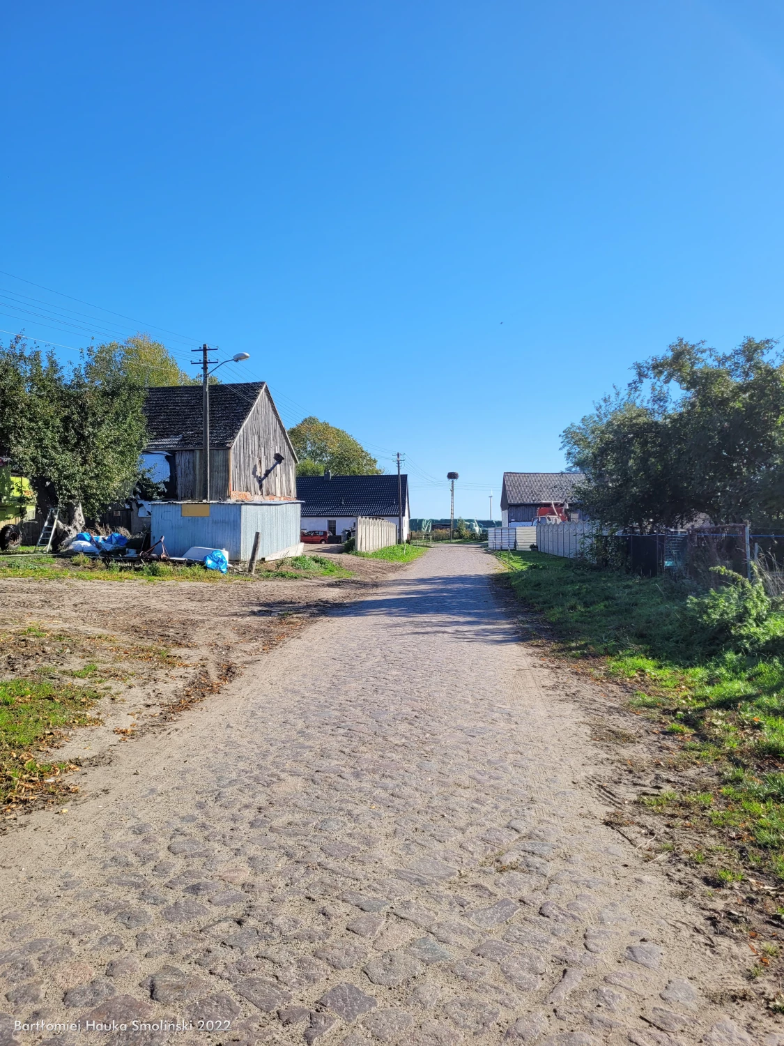 7 października 2022 , Droga łącząca nieistniejący dworzec z główną drogą wsi. Widok w kierunku wschodnim, w stronę głównej drogi, po lewej zabudowania Roby 12, po prawej zabudowania Roby 13.Skomentuj zdjęcie |