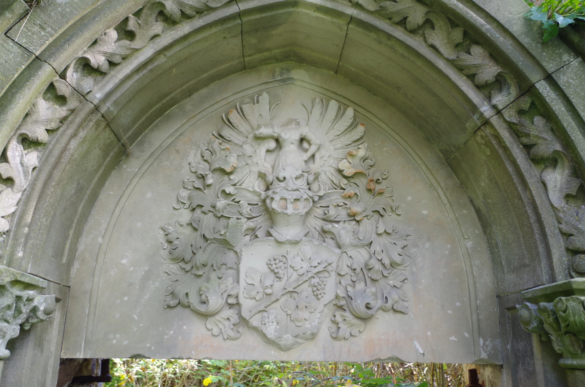 19 października 2022 , Herb rodziny von Blumennthal na ścianie frontowej kościoła.Skomentuj zdjęcie