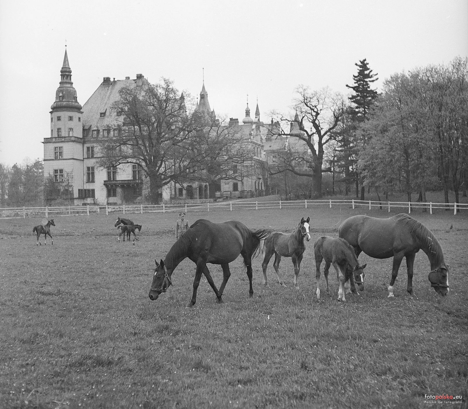 1950 , Stadnina koni w Mosznej, w głębi zamek.Skomentuj zdjęcie |