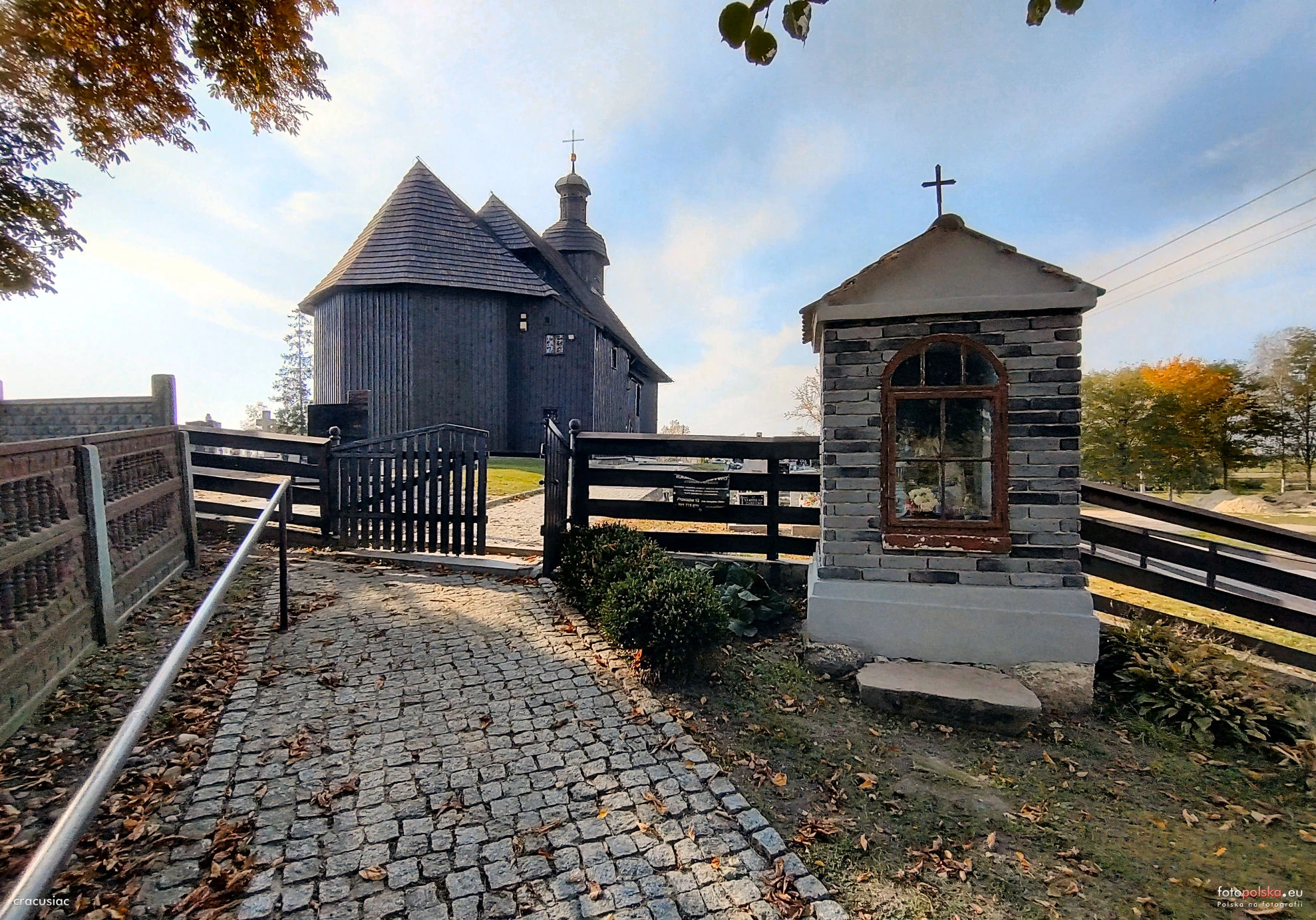 0 pobrań 440 odsłon 6 średnia ocen Poprzednie i następne zdjęcia cracusiac Obiekty widoczne na zdjęciu Kościół św. Rocha więcej zdjęć (6) Zbudowano: 1711 Zabytek: 602 z 31.12.1990 Wybudowany w 1711 r., gruntownie odnowiony w 1920 r. Konstrukcji zrębowej, oszalowany. Orientowany. Jednonawowy, z nieco węższym, trójbocznie zamkniętym prezbiterium. Od południa przy prezbiterium zakrystia, przy nawie – kruchta. W zachodnią część nawy wtopiona wieża nakryta kopułą. Dachy kryte gontami. Nad kopułą wieży sygnaturka kryta blachą. Wewnątrz pozorne, spłaszczone sklepienie kolebkowe. Na sklepieniu oraz ścianach prezbiterium i nawy barokowo – ludowa polichromia z XVIII w. Barokowy ołtarz główny z 1 poł. XVIII w. z obrazem św. Rocha. Ołtarz boczny po stronie północnej − barokowy z 1716 r. z obrazem św. Barbary, po stronie południowej − wczesnobarokowy z 1698 r. z obrazem św. Jana Ewangelisty. Barokowa ambona z XVIII w. Za: |