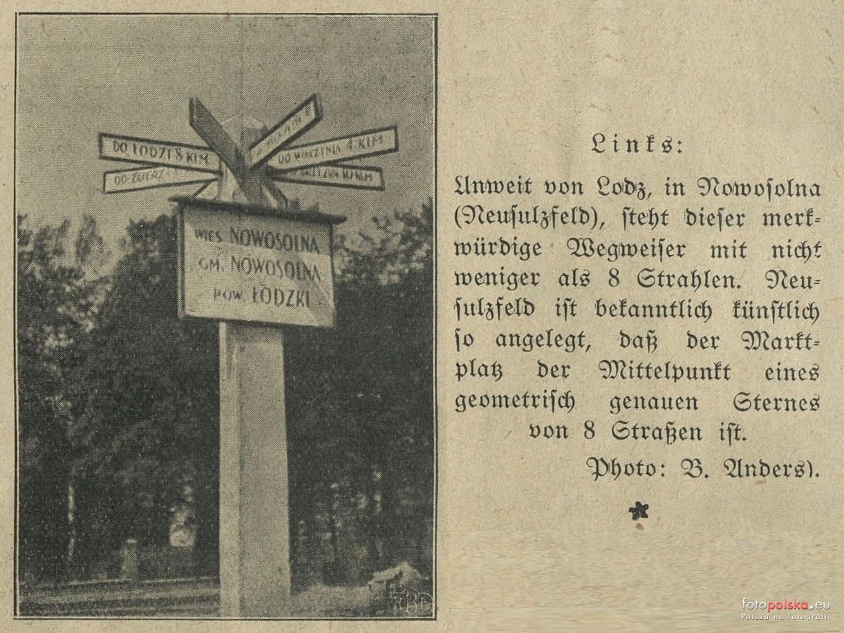 1935 , Ośmioramienny drogowskaz w centrum Nowosolnej. Źródło: Die Zeit im Bild : Sonntagsbeilage zur "Freien Presse". 1935, nr 23Skomentuj zdjęcie |