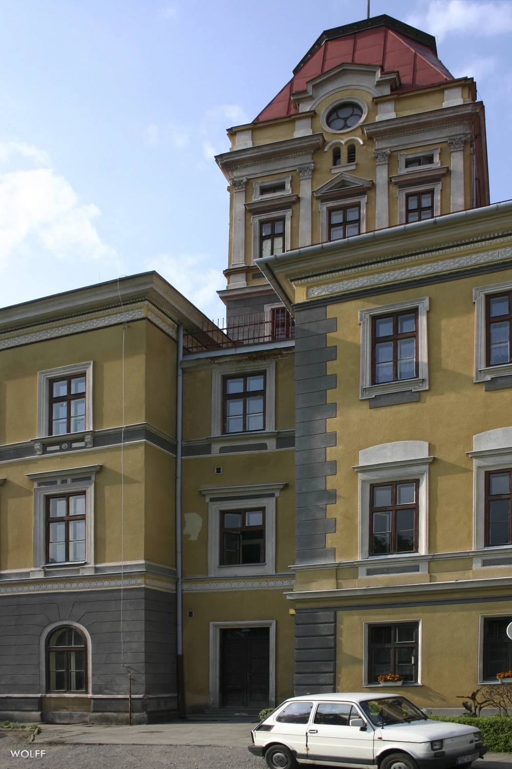1 pobranie 439 odsłon 6 średnia ocen Poprzednie i następne zdjęcia PiotrW Obiekty widoczne na zdjęciu Pałac więcej zdjęć (18) Pałac w Kończycach Wielkich został wzniesiony w malowniczej okolicy przez marszałka Księstwa Cieszyńskiego barona Jerzego Fryderyka Wilczka pod koniec XVII wieku w miejscu starszego obiektu. Często przebudowywany składał się z zasadniczego korpusu z wysuniętym ryzalitem, wieży oraz bocznego pawilonu. Obok pałacu, kolejni właściciele Kończyc – Harasowscy z Harasowa, wystawili w 1776 roku murowaną kaplicę w której znajdują się groby właścicieli wsi. Wokół pałacu rozciąga się angielski park krajobrazowy ze stawem. Obecny barokowo-klasyczny francuski kostium pałac zyskał pod koniec XIX wieku. Od 1825 roku stał się rezydencją jednej z linii hrabiów Larischów von Monnichów. W pamięci mieszkańców ziemi cieszyńskiej zapisała się w szczególności ostatnia jego posiadaczka, zmarła w 1957 roku hrabina Gabriela von Thun und Hohenstein, wielka filantropka i fundatorka jednego z pawilonów Szpitala Śląskiego w Cieszynie. Była damą dworu cesarzowej, natomiast jej mąż, hrabia Ferdynand Thun – adiutantem cesarza Franciszka Józefa I. Po wojnie do 2006 roku w pałacu znajdował się dom dziecka. W 2007 roku pałac został sprzedany w ręce prywatne, po zakończeniu remontu ma pełnić funkcje hotelowe. ul. Zamkowa więcej zdjęć (33) |