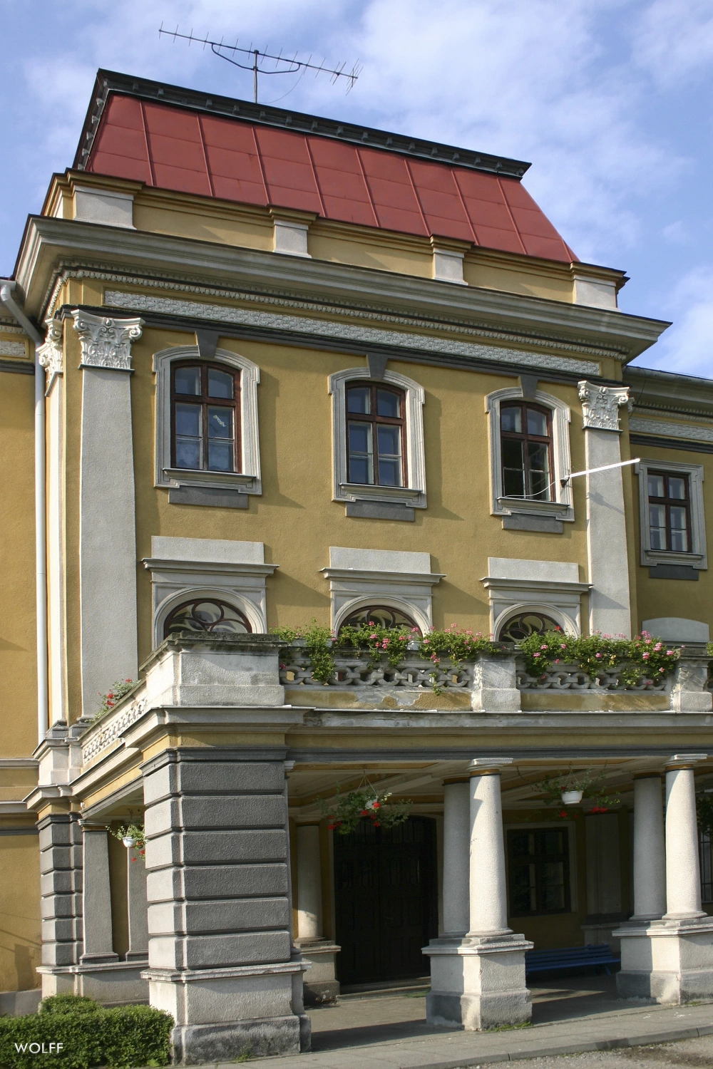 1 pobranie 449 odsłon 6 średnia ocen Poprzednie i następne zdjęcia PiotrW Obiekty widoczne na zdjęciu Pałac więcej zdjęć (18) Pałac w Kończycach Wielkich został wzniesiony w malowniczej okolicy przez marszałka Księstwa Cieszyńskiego barona Jerzego Fryderyka Wilczka pod koniec XVII wieku w miejscu starszego obiektu. Często przebudowywany składał się z zasadniczego korpusu z wysuniętym ryzalitem, wieży oraz bocznego pawilonu. Obok pałacu, kolejni właściciele Kończyc – Harasowscy z Harasowa, wystawili w 1776 roku murowaną kaplicę w której znajdują się groby właścicieli wsi. Wokół pałacu rozciąga się angielski park krajobrazowy ze stawem. Obecny barokowo-klasyczny francuski kostium pałac zyskał pod koniec XIX wieku. Od 1825 roku stał się rezydencją jednej z linii hrabiów Larischów von Monnichów. W pamięci mieszkańców ziemi cieszyńskiej zapisała się w szczególności ostatnia jego posiadaczka, zmarła w 1957 roku hrabina Gabriela von Thun und Hohenstein, wielka filantropka i fundatorka jednego z pawilonów Szpitala Śląskiego w Cieszynie. Była damą dworu cesarzowej, natomiast jej mąż, hrabia Ferdynand Thun – adiutantem cesarza Franciszka Józefa I. Po wojnie do 2006 roku w pałacu znajdował się dom dziecka. W 2007 roku pałac został sprzedany w ręce prywatne, po zakończeniu remontu ma pełnić funkcje hotelowe. ul. Zamkowa więcej zdjęć (33) |