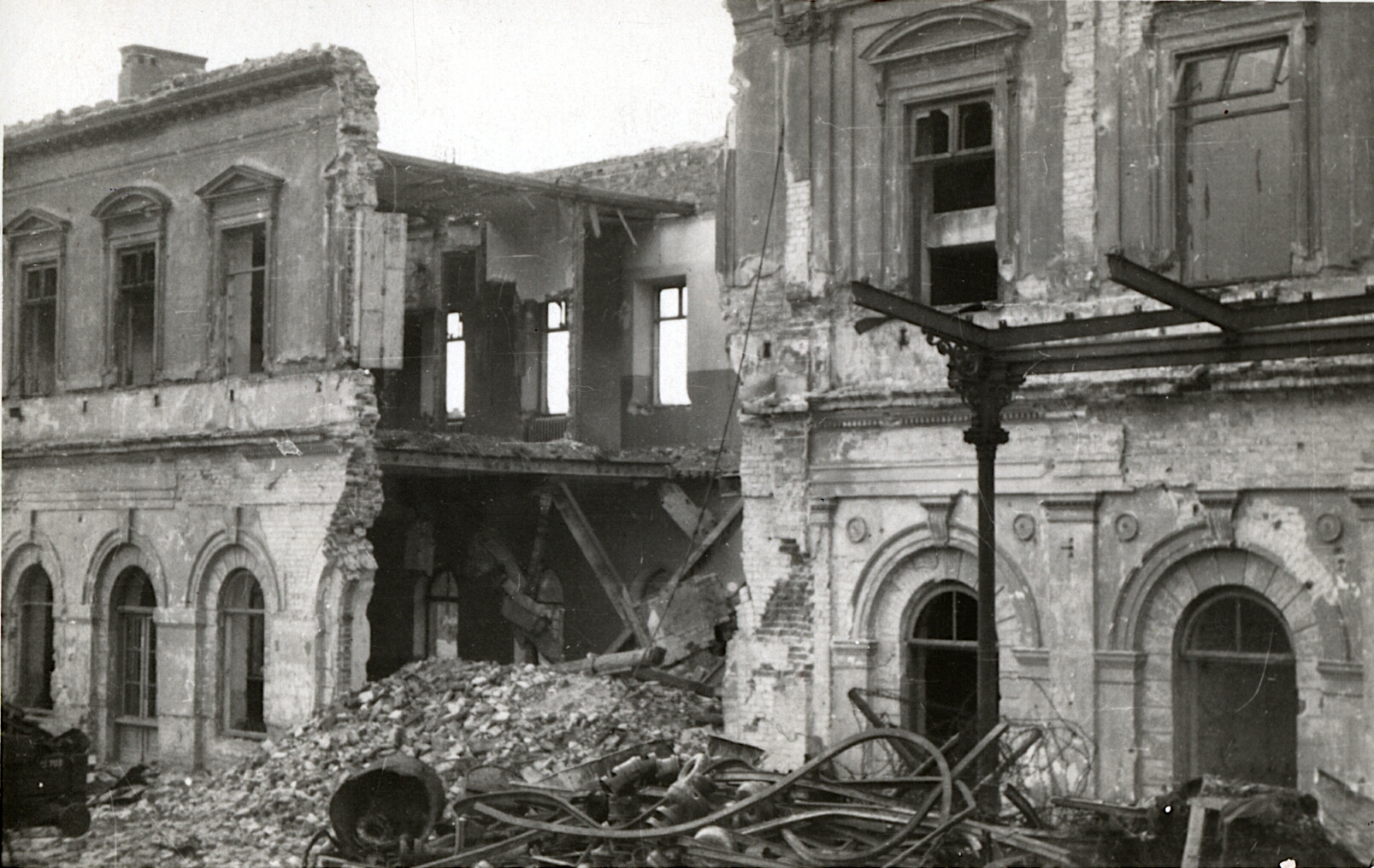 9 lipca 1945 , Zrujnowany Dworzec Wschodni od strony peronów.Skomentuj zdjęcie |