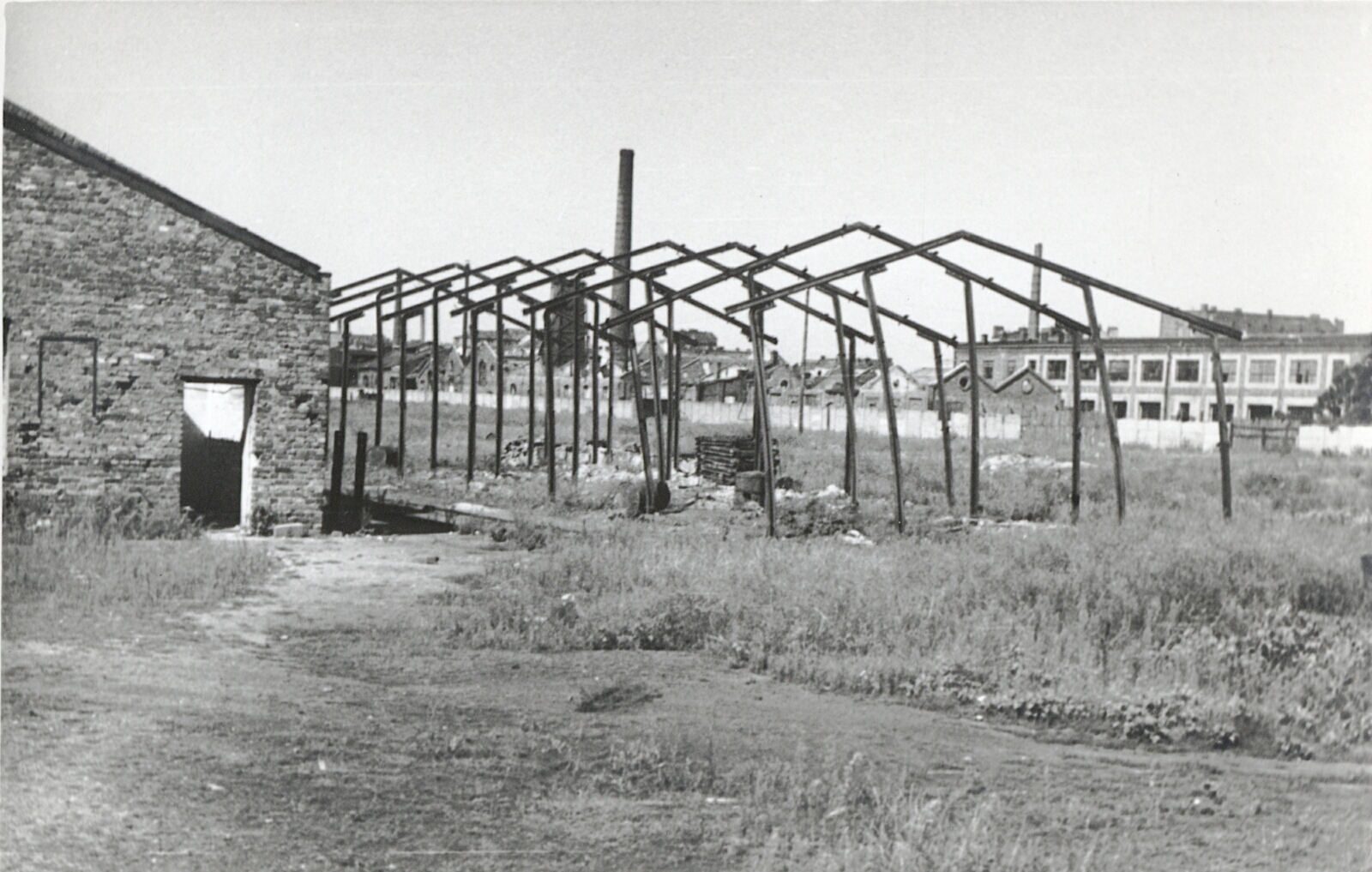 10 sierpnia 1945 , Szkielet wypalonego magazynu D.Z., po lewej budynek kancelarii.Skomentuj zdjęcie |