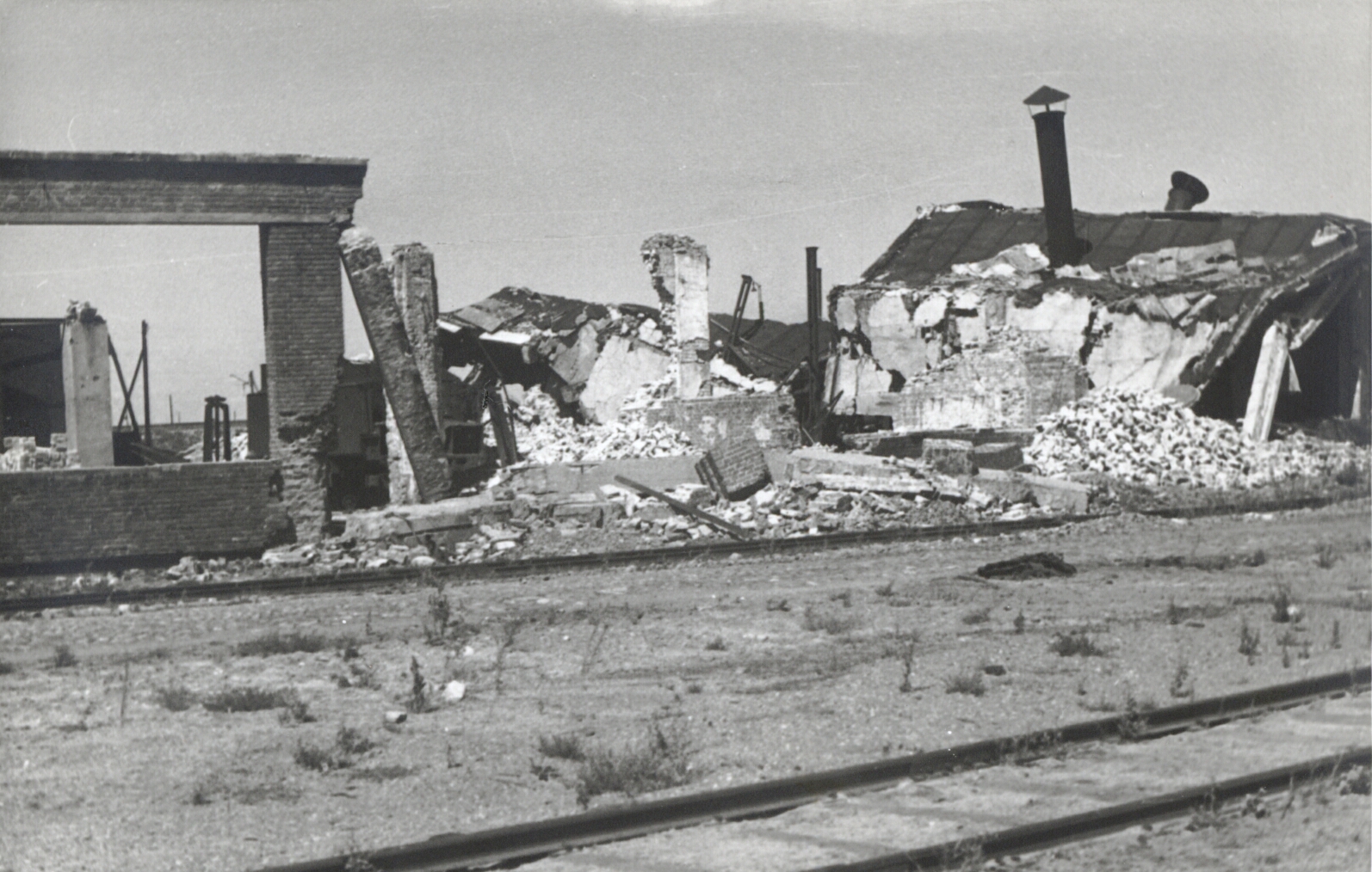10 sierpnia 1945 , Pozostałości lokomotywowni wachlarzowej.Skomentuj zdjęcie |