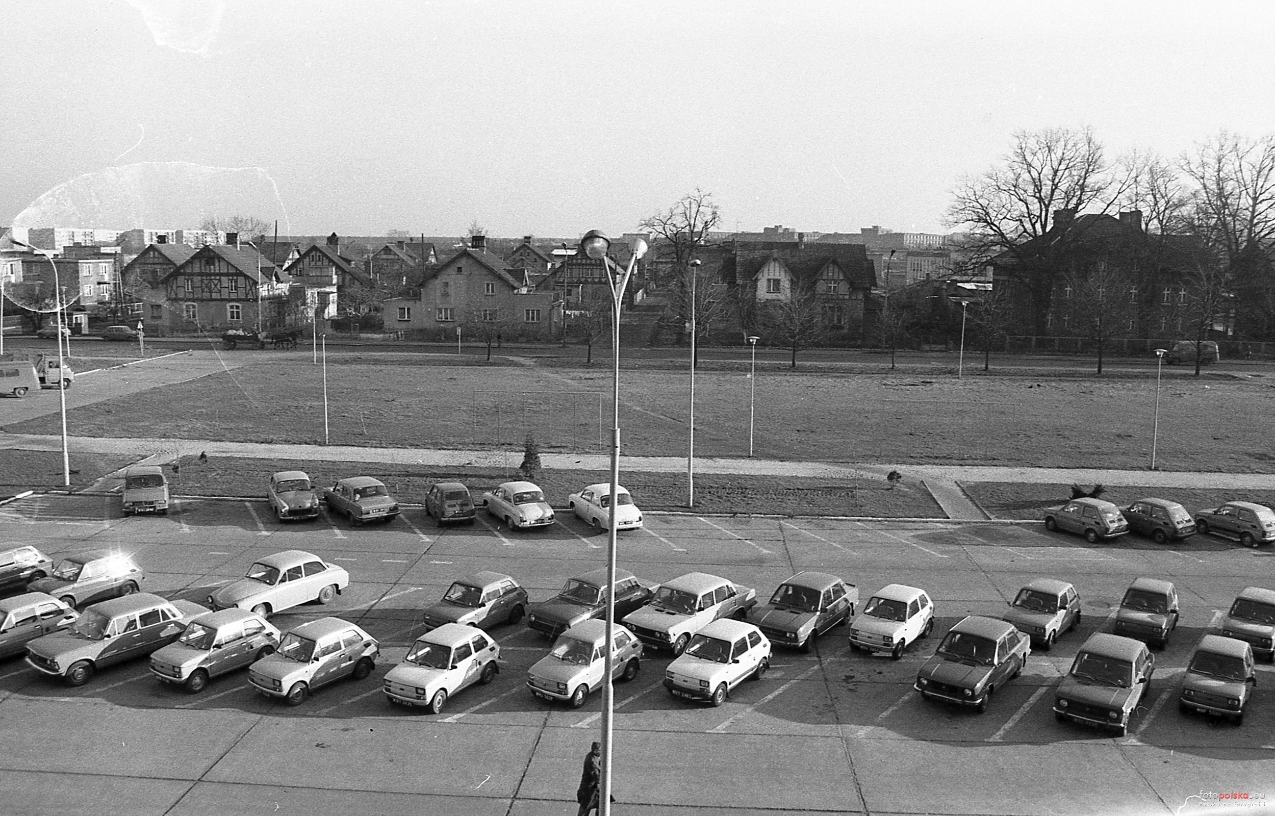 1984 , Zakłady Predom-Polar - widok z okna budynku biurowego na parking zakładowy i na ulicę Bora-Komorowskiego.Skomentuj zdjęcie