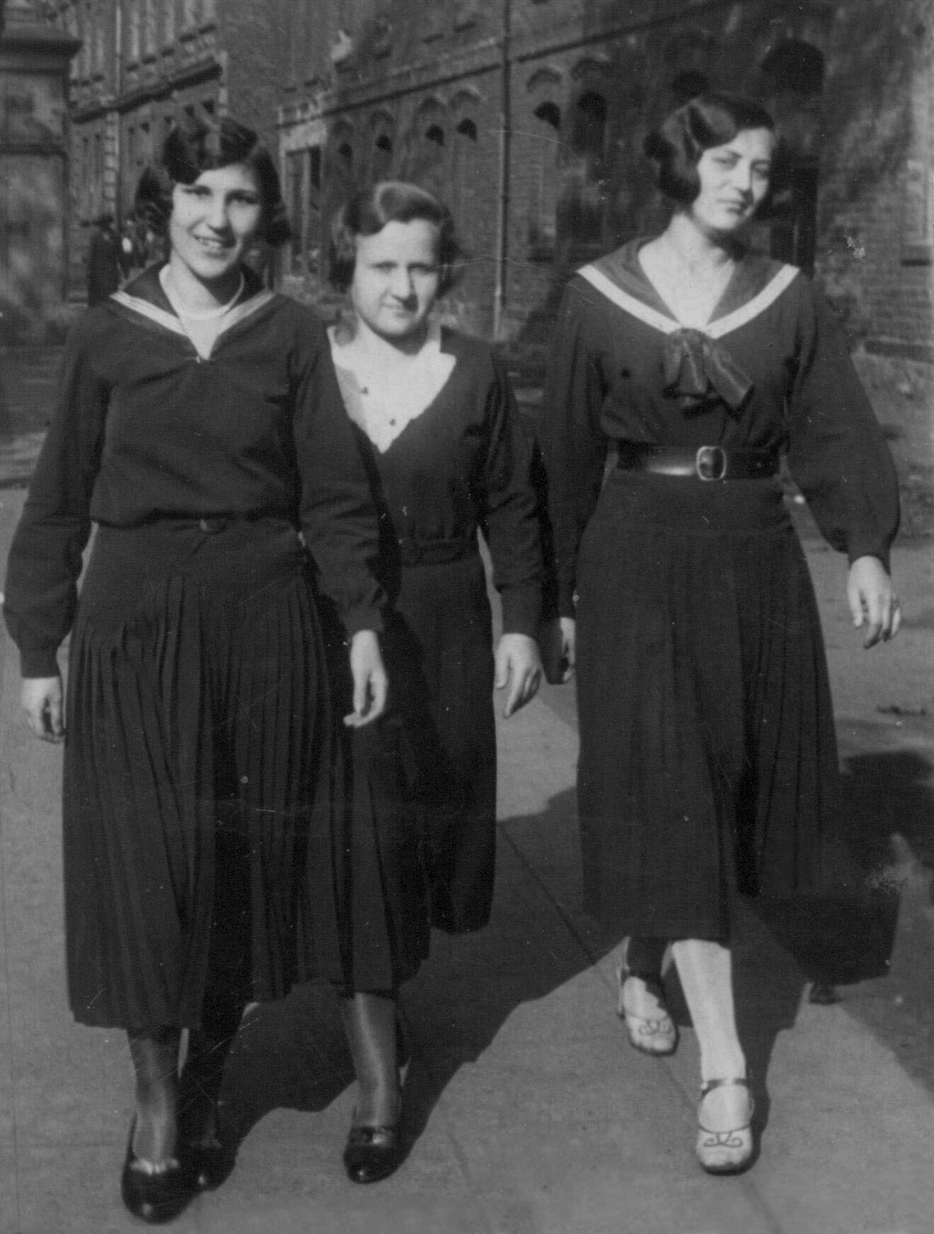 Lata 1933-1934 , Ulica 1 Maja - przy kamiency nr 224 uczennice Państwowego Seminarium Nauczycielskiego Żeńskiego w Nowej Wsi (po lewej stronie u góry fragment transformatora).Skomentuj zdjęcie