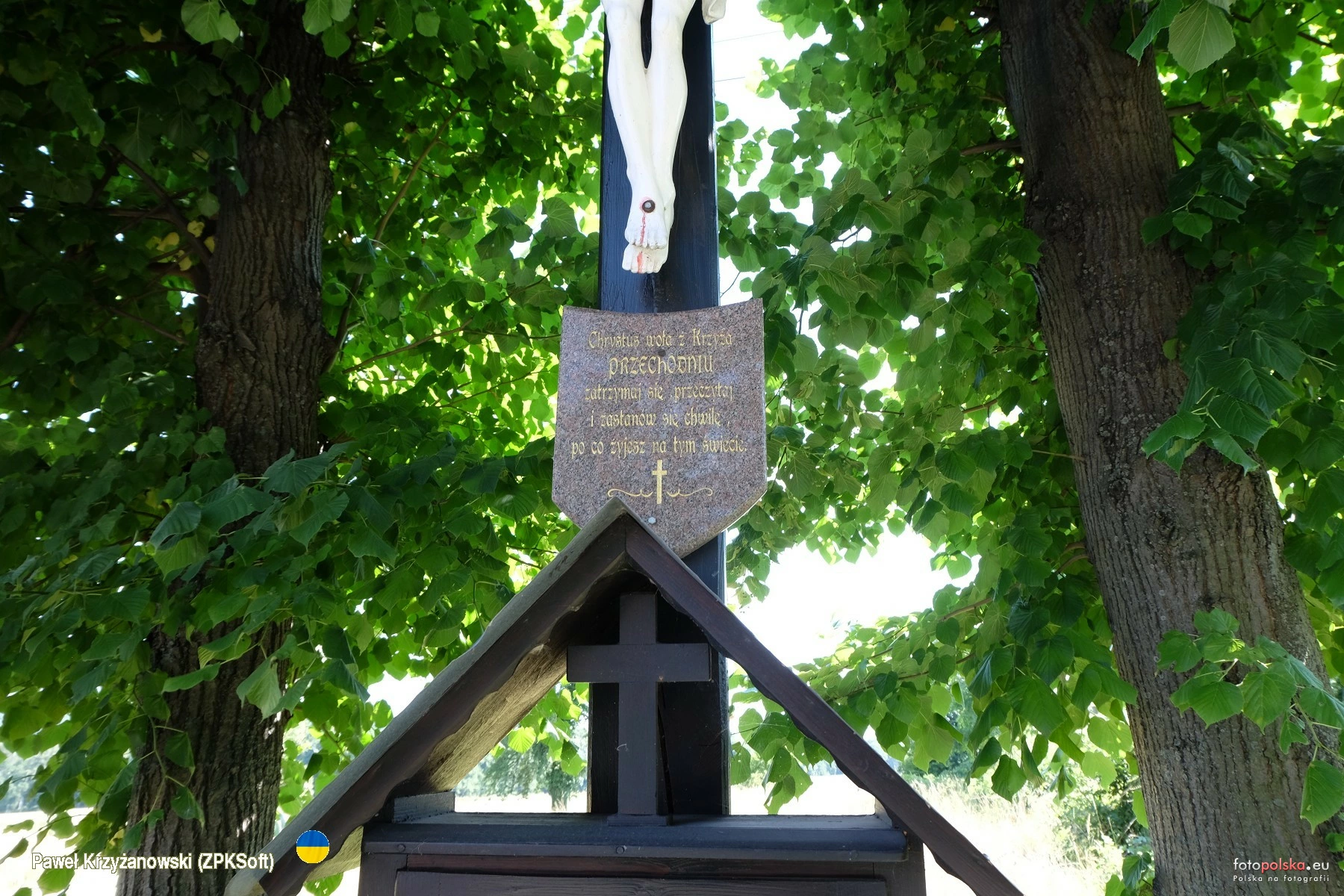 3 sierpnia 2022 , Kołaczów - kapliczka przydrożna z krzyżem. Na zdjęciu inskrypcja pod krzyżem.Skomentuj zdjęcie |