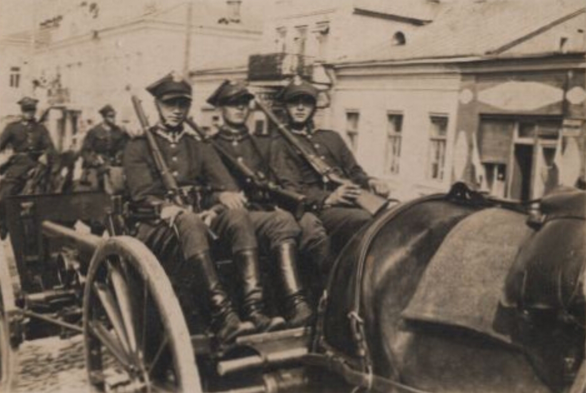 1935 , Przejazd wojska przez miasto. Zdjęcie pochodzi z zasobów Miejskiej i Gminnej Biblioteki Publicznej Głubczyce.Skomentuj zdjęcie
