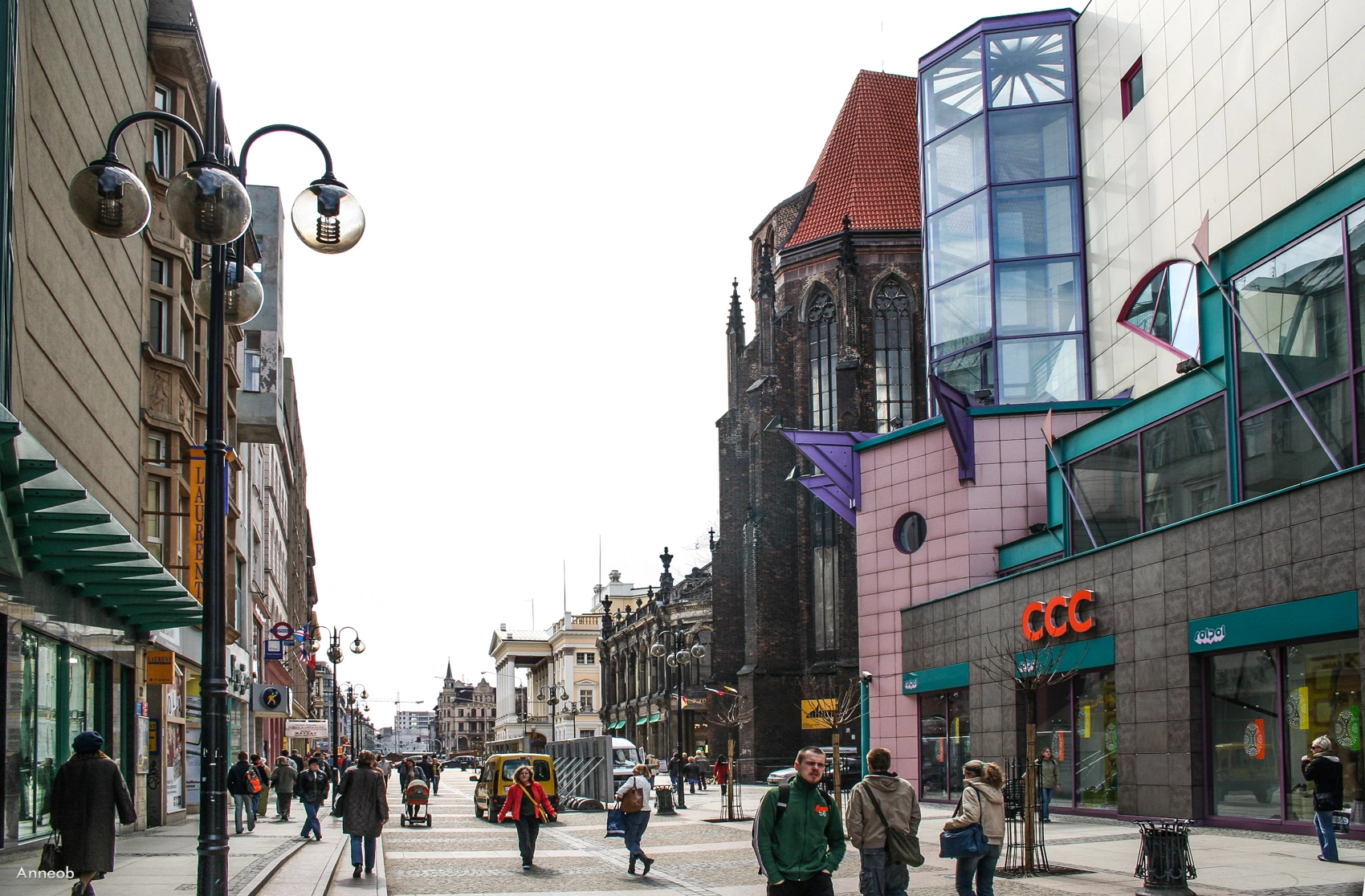 1 pobranie 377 odsłon 6 średnia ocen Poprzednie i następne zdjęcia Anneob Obiekty widoczne na zdjęciu Dom Handlowy "Solpol I" więcej zdjęć (31) Architekci: Wojciech Jarząbek, Jan Matkowski, Paweł Jaszczuk, Jacek Sroczyński Inwestor: Zygmunt Solorz Zbudowano: 1993 Zlikwidowano: 2022 Otwarcie nastąpiło dnia 6 XII 1993. ul. Świdnicka więcej zdjęć (4176) Dawniej: Schweidnitzer Strasse, Neue Schweidnitzer Strasse, Aleksandra Fredry, Stalingradzka Ulica prowadząca od południowo-wschodniego narożnika Rynku na południe należy do najstarszych we Wrocławiu. Pierwszy odcinek od Rynku do wewnętrznej fosy wytyczono ok. 1240 r. ale już w początkach XIV w. przedłużono ją do fosy zewnętrznej. Pierwszy zapis pojawia się w 1345 r., gdzie występuje pod nazwą Schwiednitzerstr. (ul. Świdnicka). W XIV w. powstały także dwa zespoły klasztorno-szpitalne związane z zakonem Joannitów (kościół Bożego Ciała) i zakonem Augustianów (kościół św. Doroty). Od początku wznoszono przy ulicy wiele karczm i zajazdów, a także pełniła ona funkcje handlowe. Dalszy rozwój ulicy nastąpił po wyburzeniu fortyfikacji miejskich w 1807 r. Oficjalnie przedłużono ją do obecnej ul. Powstańców Śląskich w 1823 r., nadając nowemu odcinkowi nazwę Neue Schweidnitzerstr. W pierwszej połowie lat 40. XIX w. wzniesiono z inicjatywy Eugena von Vaersta gmach Teatru Miejskiego, który zaprojektował Carl Ferdinand Langhans. Tuż obok powstał w 1846 r. budynek Generalnej Komendantury wg proj. F.A. Stüllera, a w latach 1863-65 budynek hotelu Monopol wg proj. spółki Brost & Grosser, do którego dobudowano w 1892 r. dom towarowy o tej samej nazwie. W pierwszej połowie XX w. najważniejszą budowlą wzniesioną przy ulicy był niewątpliwie olbrzymi dom handlowy firmy Wertheim (1928 r.). Niestety zniszczenia wojenne nie ominęły tej ulicy. Najbardziej ucierpiały odcinki północny przy Rynku i południowy od pl. Kościuszki do nasypu kolejowego. Luki w zabudowie stopniowo zastąpiono nowymi budynkami nie zawsze godnymi stania przy jednej z bardziej reprezentacyjnych ulic Wrocławia. W latach 70. w trakcie budowy trasy WZ zburzono także wybudowany w latach 30. dom handlowy Bielschowsky proj. Hermana Wahlicha, w którym po wojnie mieściła się m.in. składnica harcerska. Po wybudowaniu trasy WZ zlikwidowano na odcinku od Rynku do pl. Teatralnego linię tramwajową, a także ograniczono ruch samochodowy. W ostatnich latach ulica przeszła generalny remont na wspomnianym wyżej odcinku, który zmieniono jednocześnie w deptak. Co do nazwy ulicy to przez kilka miesięcy 1945 roku na całej długości obowiązywała historyczna nazwa - ul. Świdnicka. W listopadzie 1945 r. patronem dawnej Neue Schweidnitzerstr. został komediopisarz i poeta Aleksander hr. Fredro. Lecz hrabia miał swą ulicę tylko kilka lat. Już w 1952 r. przyłączono ją do ulicy Świdnicką, którą jednocześnie przemianowano "na wieczne czasy" na ul. Stalingradzką. Na wieczne czasy, czyli na pięć lat, bo do 1957 r. Wtedy przywrócono historyczną nazwę - ul. Świdnicka. |