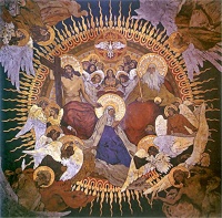 W kruchcie kościoła umieszczono inskrypcję autorów polichromii: „Kościół ten staraniem przewielebnego księdza Dominika Rocha Milberta, proboszcza naonczas w Sosnowcu, z dobrowolnych ofiar przez artystów malarzy z Krakowa, panów Włodzimierza Tetmajera i Henryka Uziembło w RP 1904-1906 malowaniem ozdobiony został ku Bożej chwale i tej Rzeczypospolitej nieszczęśliwej wspomożeniu, dla dźwignięcia serc wszystkich Polaków ozdobiona świątynia niechaj będzie przybytkiem wiary w sprawiedliwość bożą”.