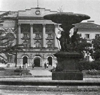 Fontanna, która zdobi skwer przy kinie "Muranów" pierwotnie ustawiona była przed kościołem karmelitów bosych przy Krakowskim Przedmieściu. Przeniesiono ją na Plac Bankowy w grudniu 1898r.,tuż przed odsłonięciem pomnika Adama Mickiewicza. Kolejny raz przeniesiono fontannę (w obecne miejsce) w 1952r., kiedy trójkątny plac Bankowy stał się trasą komunikacyjną łączącą Śródmieście z Żoliborzem.