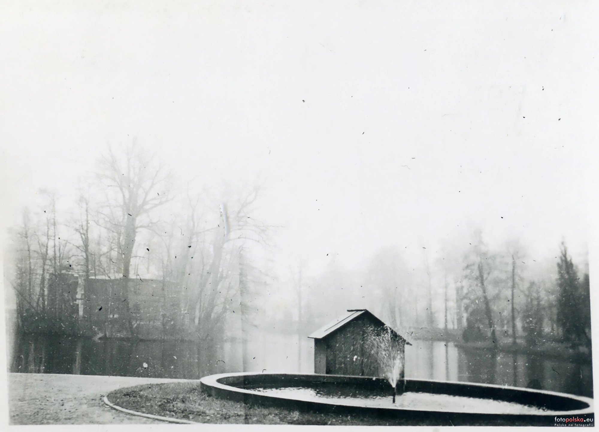 Łazienki Królewskie. Fontanna przed pałacem na wyspie