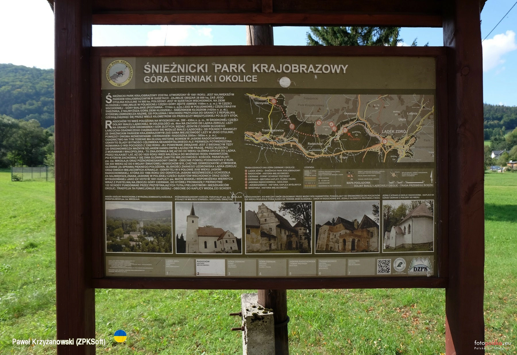 27 sierpnia 2022 , Tablica stojąca w centrum Radochowa z mapą okolic i zdjęciami najważniejszych we wsi obiektów.Skomentuj zdjęcie |