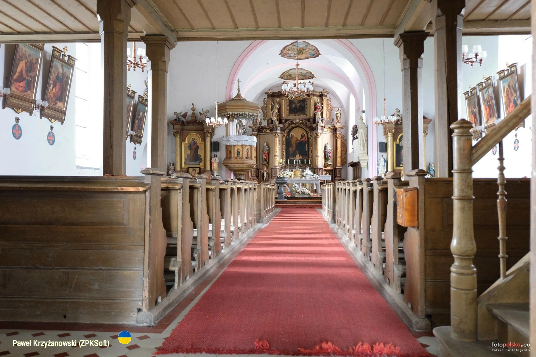 2 września 2022 , Barokowy wystrój wnętrza kościoła św. Apostołów Piotra i Pawła powstały w l. 1707 - 1727. Początki kościoła sięgają XIII w. ale obecna bryła to fragmentarycznie mury z wieku XIV i dobudowane kaplice i wieża z XVII-XVIII w. Foto przez kratę.Skomentuj zdjęcie |