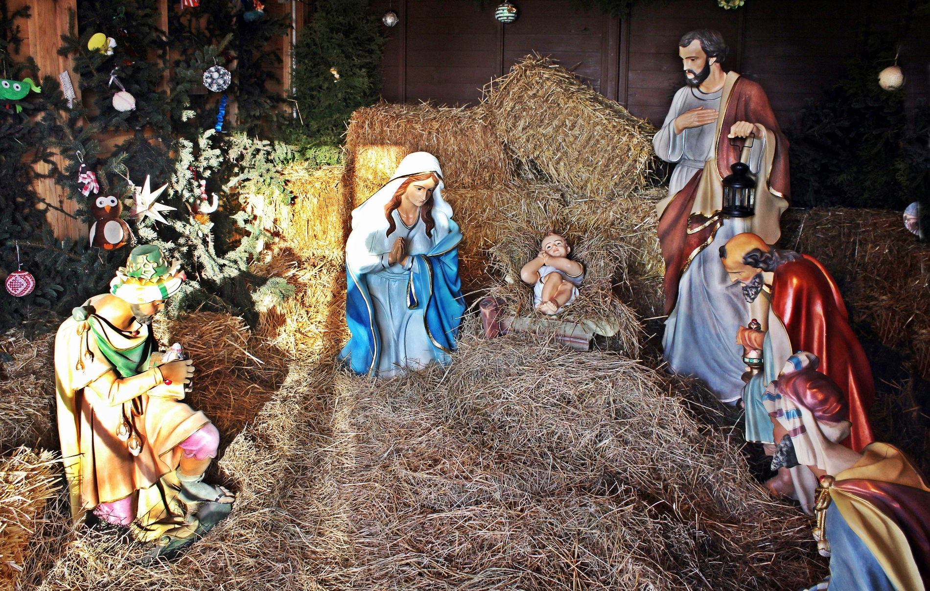 27 grudnia 2017 , Szopka z postaciami naturalnych rozmiarów i żywymi zwierzątkami (niewidoczne na zdjęciu) w budynku przeznaczonym dla alpak.Skomentuj zdjęcie