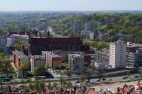 30 kwietnia 2011 , Widok na fragment Przedmieścia przezwanego też Starym. Widoczny kościół pod wezwaniem Świętej Trójcy. W lewym dolny rogu widać plac pod budowę Teatru Szekspirowskiego.