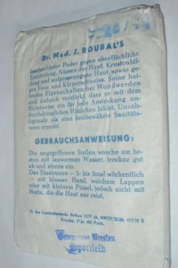 Lata 1944-1945 , 100 gramowy woreczek pudru na rany. U dołu pieczątka Ortsgruppe Breslau Sportfeld . Nadaje się ?Skomentuj zdjęcie