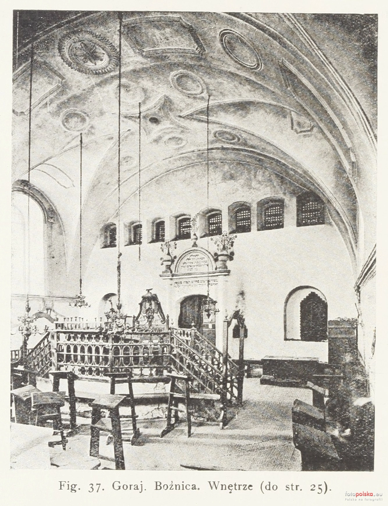 Lata 1920-1925 , Wnętrze synagogi. Źródło: Materjały do architektury bożnic w Polsce, A.Szyszko-Bohusz, 1926.Skomentuj zdjęcie |