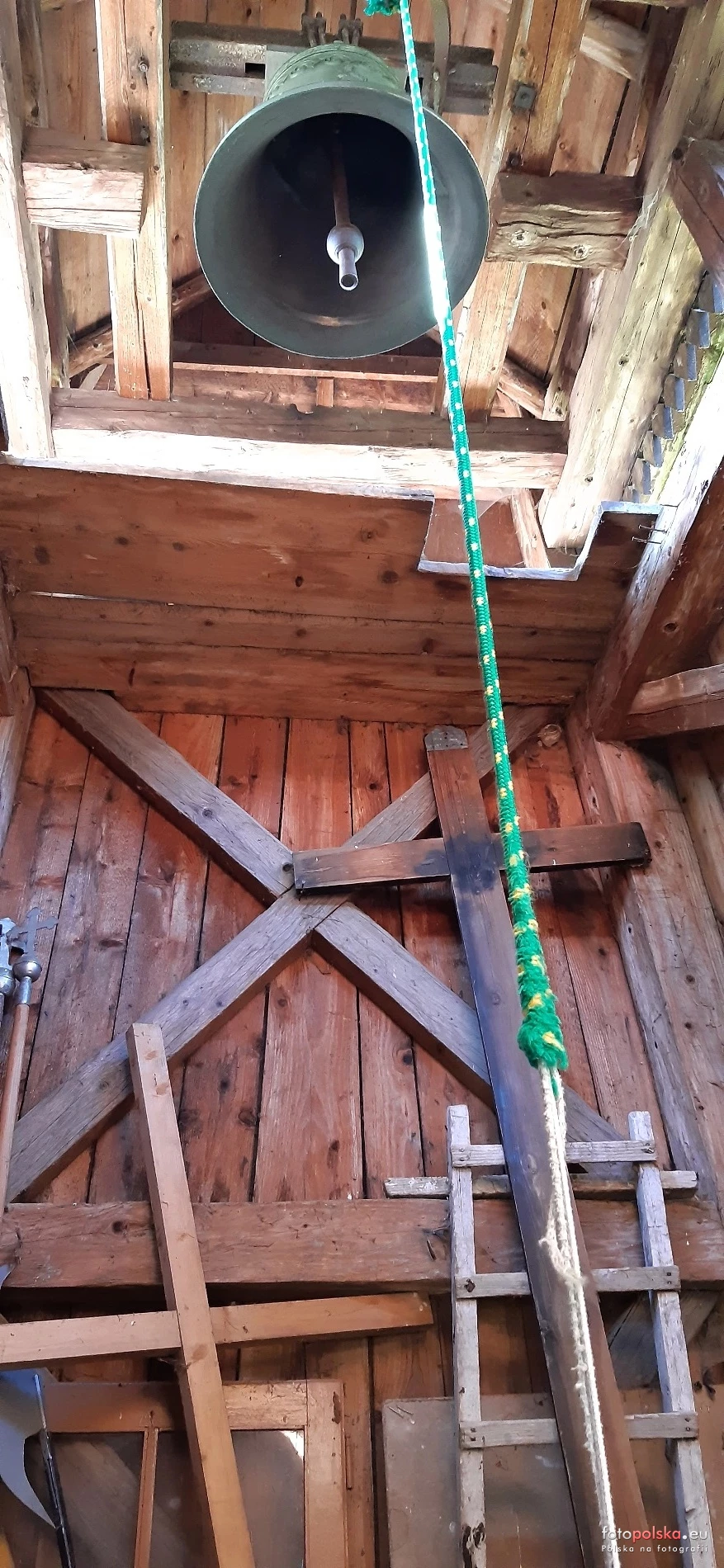 30 sierpnia 2020 , Wnętrze starej dzwonnicy.(1922) z nowym dzwonem (1974 r).Skomentuj zdjęcie