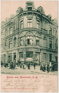 3 pobrania 553 odsłony 0 średnia ocen Poprzednie i następne zdjęcia Knefel Obiekty widoczne na zdjęciu Wolności 8 - Grunwaldzka 22 więcej zdjęć (19) Zbudowano: 1892 pl. Wolności więcej zdjęć (150) Dawniej: Nowy Rynek, Plac Wolności , Plac Piłsudskiego, Adolf Hitler Platz. Tytułowy plac należy do miejsc najbardziej reprezentacyjnych w mieście, stawiano na nim różne pomniki w zależności od panującej ideologii. Często zmieniała się jego nazwa kolejno: Nowy Rynek, Wilhelmsplatz, A. Hitler-Platz i wreszcie Plac Wolności. Co pewien czas zmieniano układ komunikacyjny placu, burzono i stawiano nowe budynki, różnie urządzano zielone skwerki. Na placu odbywał się niegdyś targ, dlatego nazywano go Nowym Rynkiem. Przy placu stoją najładniejsze w mieście kamienice, na jednej z nich umieszczona jest data budowy. 1892 r. W kamienicy tej mieszczą się dziś biura i mieszkania, warto też zajrzeć do środka, by zobaczyć ciekawe schody i przy odrobinie szczęścia piękne przestronne lokale (stan 2004). Pocztówka z 1900 r. przedstawia Plac Wolności jako przestrzeń jeszcze zamkniętą, bo takim był pierwotnie. Nic wybudowana została jeszcze kamienica, w której dziś mieści się min. Mysłowicka Szkoła Języków Obcych. Z perspektywy, którą pokazuje ilustracja odsłonięty i dobrze widoczny jest budynek więzienia. W roku 1900 przez plac prowadziła linia tramwajowa, dochodząca pod sam dworzec kolejowy; w dni targowe, tuż przy linii rozkładano stragany, tramwajem przyjeżdżali tu kupujący z katowickich dzielnic. 18 października 1902 r. odsłonięte dwa pomniki: cesarza Wilhelma I i Fryderyka III. Co ciekawe stały one jeszcze krótko po przyłączeniu Mysłowic do Polski w roku 1922. Pomniki obsadzone były zielenią i żywopłotem. Plac Wolności miał szczęście do likwidowania i stawiania pomników. Rzadko które miasto może pochwalić się podobną różnorodnością bohaterów, goszczących tu na dłużej bądź krócej. Po zlikwidowaniu pomników wyżej wymienionych planowano postawienie pomnika powstańcom śląskim. Był gotowy projekt, lecz do realizacji nigdy nie doszło. Po drugiej wojnie światowej w roku 1953 postawiono pomnik wdzięczności armii radzieckiej. Na czterometrowej kolumnie stał w pozycji pionowej czerwonoarmista, trzymający w ramionach karabin, u dołu kobieta i mężczyzna trzymali flagę polską i radziecką. Po roku 1989 spotkał go los wielu innych pomników sławiących wyzwolicieli naszego kraju. W latach 70 wyburzono zabudowania w północnej części placu, w celu polepszenia komunikacji na tym odcinku. Ofiarą padły zabytkowe kamienice w samym centrum miasta po drugiej stronie dzisiejszej ulicy Grunwaldzkiej, dokładnie w miejscu tych kamienic stoi dziś kapliczka Jarlików i nowo wybudowany kompleks wypoczynkowy z fontanną. W roku 2002 odsłonięty został pomnik księdza kardynała Augusta Hlonda - najsławniejszego mysłowiczanina. Charakterystycznym dla placu jest jego podwyższenie w miejscu urządzonego skwerku obok pomnika Hlonda, było to wynikiem budowy schronów przeciwlotniczych w roku 1940. Do dzisiaj podwyższenie to jest odczuwalne, a ślady po wejściach do schronu i jego wentylacji zostały zasypane. |