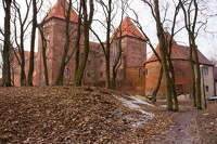 Zamek więcej zdjęć (102) Atrakcja turystyczna Zbudowano: 1370 Zabytek: 87 z 27 .06.1953 Zamek w Nidzicy wybudowany w XIV wieku w stylu gotyckim. Historia Budowę zamku rozpoczęto około 1370 r., a w 1409 roku rezydował już w nim krzyżacki prokurator. Twierdza została zbudowana z cegły na wysokiej kamiennej podmurówce. Na poddaszu, w grubości murów, obiegają zamek krużganki obronne zarówno od strony zewnętrznej jak i od strony dziedzińca. Elewacja od strony zachodniej pokryta jest ciemną cegłą. Zewnętrzną fasadę zdobią też duże ostrołukowe gotyckie okna. W jednej z sal zamkniętej absydą, w której widoczne do dziś są freski z przełomu XIV i XV wieku. Środkowa część pełniła rolę refektarza z czytelnym, choć zniszczonym malowidłem ściennym świętej Weroniki w adoracji aniołów. Refektarz sąsiadował z kancelarią wójta. Spichrze i krużganki obronne mieściły się na ostatnim piętrze zachodniej części zamku. Wieże kryte dachami namiotowymi ozdobiono wnękami i płaskimi dekoracjami, W piwnicach wież znajdowało się więzienie. Nad bramą była zajmująca dwie kondygnacje kaplica zamkowa. W tej części zamku ulokowano komnaty dla gości zakonu, tu też mieszkał wójt oraz kapelan. Rycerze, giermkowie i służba zbrojna kwaterowali w bocznych skrzydłach budowli. Na dziedzińcu zamkowym widoczna była niegdyś studnia zaopatrująca załogę w wodę. W południowo-wschodnim narożniku wznosiła się okrągła wieża. Ślimakowe schody wieży wiodły do pomieszczeń mieszkalnych wschodniego skrzydła. Odbudowa zamku Najwięcej zniszczeń dokonali na zamku żołnierze francuscy, stacjonujący tutaj z przerwami w latach 1806-1812. Od całkowitej ruiny zdewastowany przez Napoleończyków gmach uratował radca sądowy Ferdynand Tymoteusz Gregorovius, skuteczny pomysłodawca odbudowy (1828-1830) średniowiecznej twierdzy z przeznaczeniem na siedzibę sądu, prywatne mieszkania oraz więzienie. Jednak Gregorovius zastrzegł by nidziczanie wybudowali mu pomnik. Pomnik wybudowany został dopiero po ponad siedemdziesięciu latach od odbudowy zamku. Pomnik mieści się w parku zamkowym. W 1945 roku zamek nie miał już tyle szczęścia - zbombardowany przez Rosjan spłonął, tracąc stropy i część murów. Szybko jednak podjęto decyzję o jego odbudowie, w 1949 obiekt odgruzowano, a trzy lata później ruszyły pierwsze prace zabezpieczające. Pełną restaurację zabytku, łącznie z konserwacją zachowanych malowideł w kaplicy i refektarzu, zakończono w 1965, po czym uroczyście oddano go w użytkowanie lokalnym instytucjom kulturalno-społecznym. Aktualnie Aktualnie zamek służy za miejskie centrum biznesu, kultury i rozrywki. Mieści się w nim: Muzeum Ziemi Nidzickiej z ekspozycją etnograficzno-historyczną, Nidzicki Ośrodek Kultury, Bractwo Rycerskie Komturii Nidzickiej, Galeria Autorska Hieronima Surpskiego, pracownia rzeźby i biblioteka miejska. Działa tutaj również hotel oraz restauracja. Wstęp na przedzamcze i na dziedziniec zamku wysokiego wolny, do muzeum płatny. Kompleks otoczony jest gęstym XIX-wiecznym parkiem. Źródło: Licencja: CC-BY-SA 3.0 ul. Zamkowa więcej zdjęć (192) |