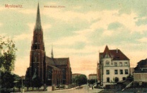 1910 , Kościół Najświętszego Serca Pana Jezusa i budynek sądu.Skomentuj zdjęcie |