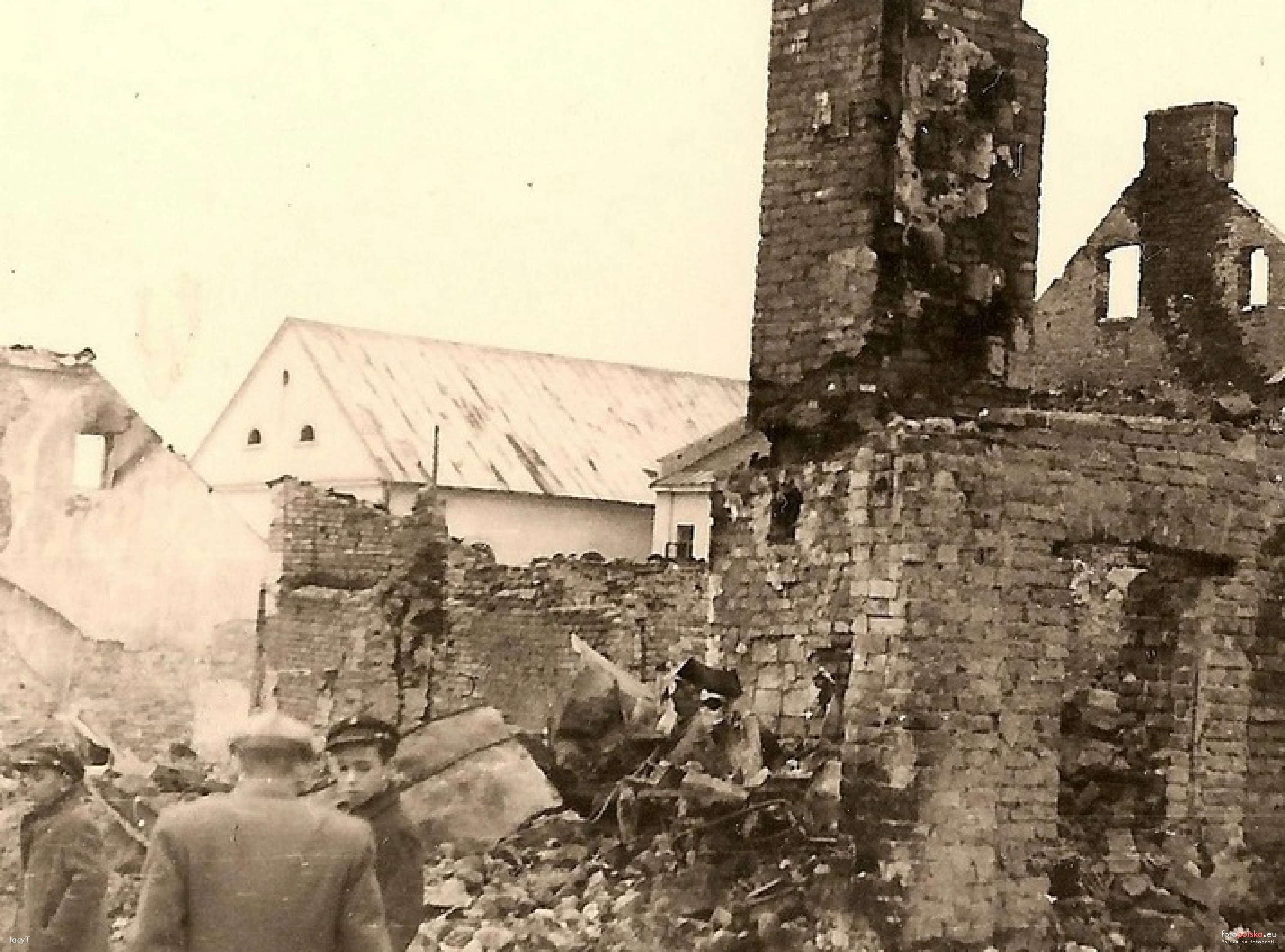 wrzesień 1939 , Zniszczenia wokół nieistniejącej synagogi w Mławie. Widok z ul. Warszawskiej w kierunku ul. Koziej. kronika-mława.plSkomentuj zdjęcie