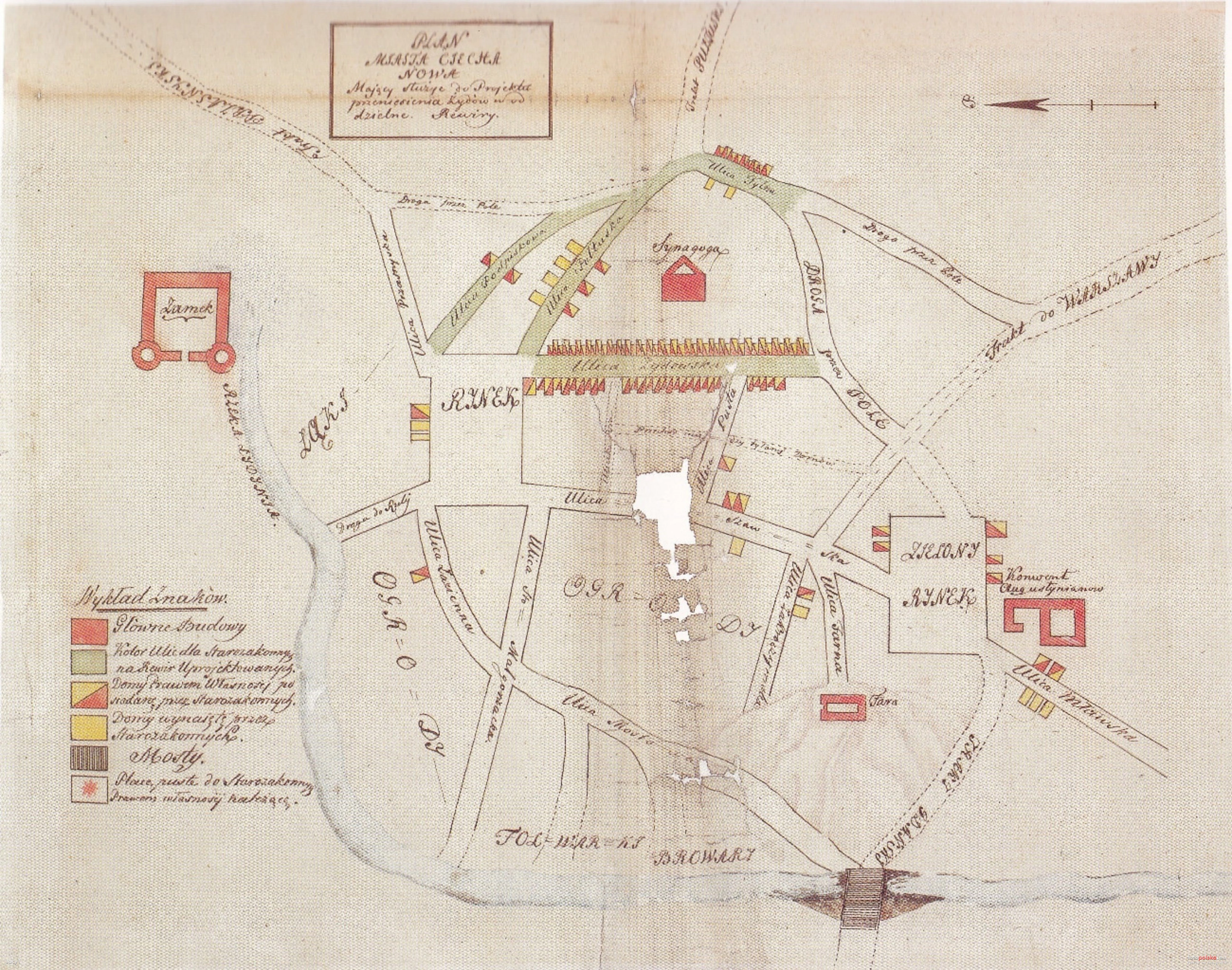 Legenda planu: 1. Główne budowle, 2. Ulice dla Starozakonnych zaprojektowane na rewir, 3. Domy prawem własności posiadane przez Starozakonnych,