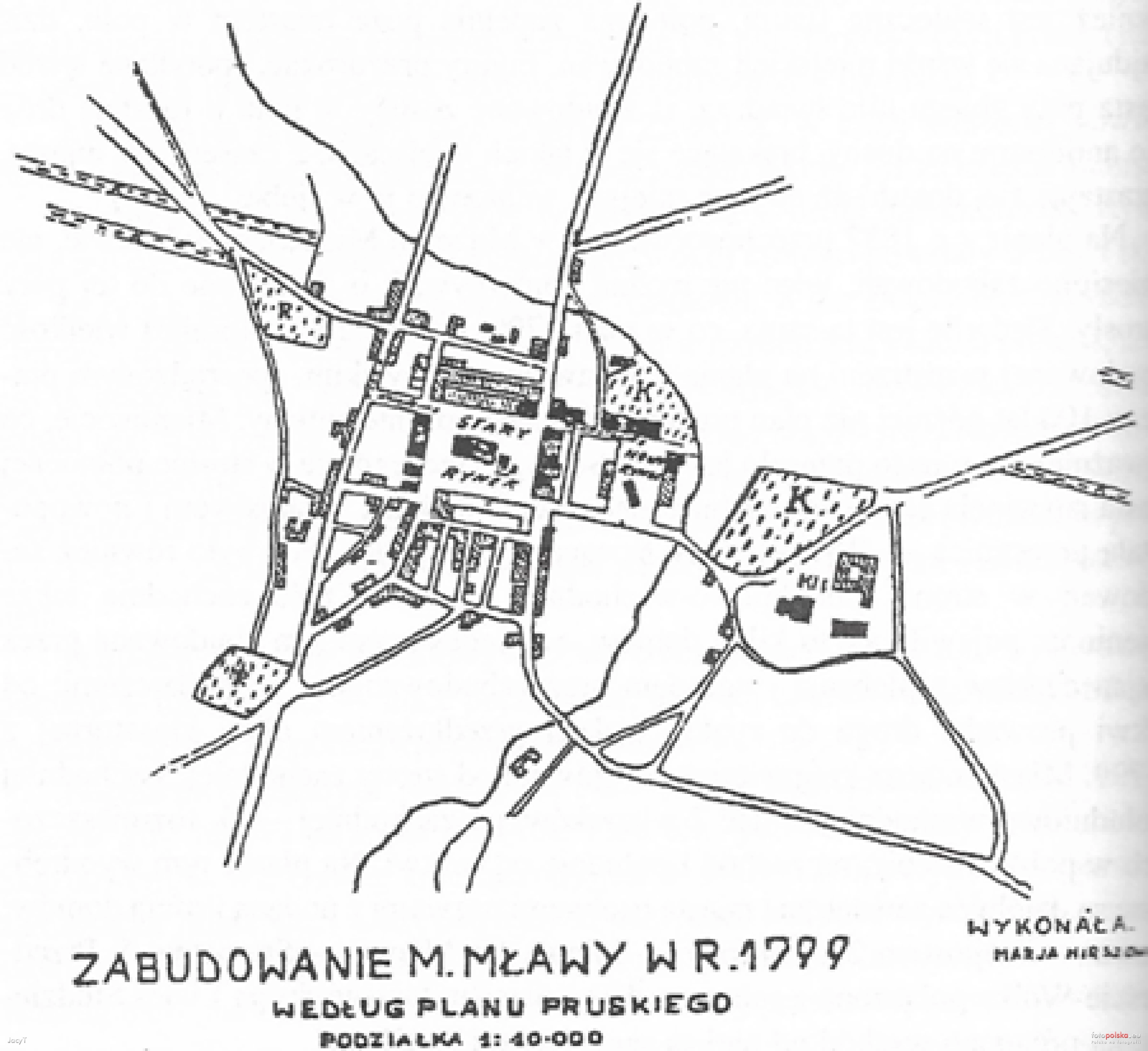 1799 , Zabudowania miasta Mławy w roku 1799 według planu pruskiego.Skomentuj zdjęcie |