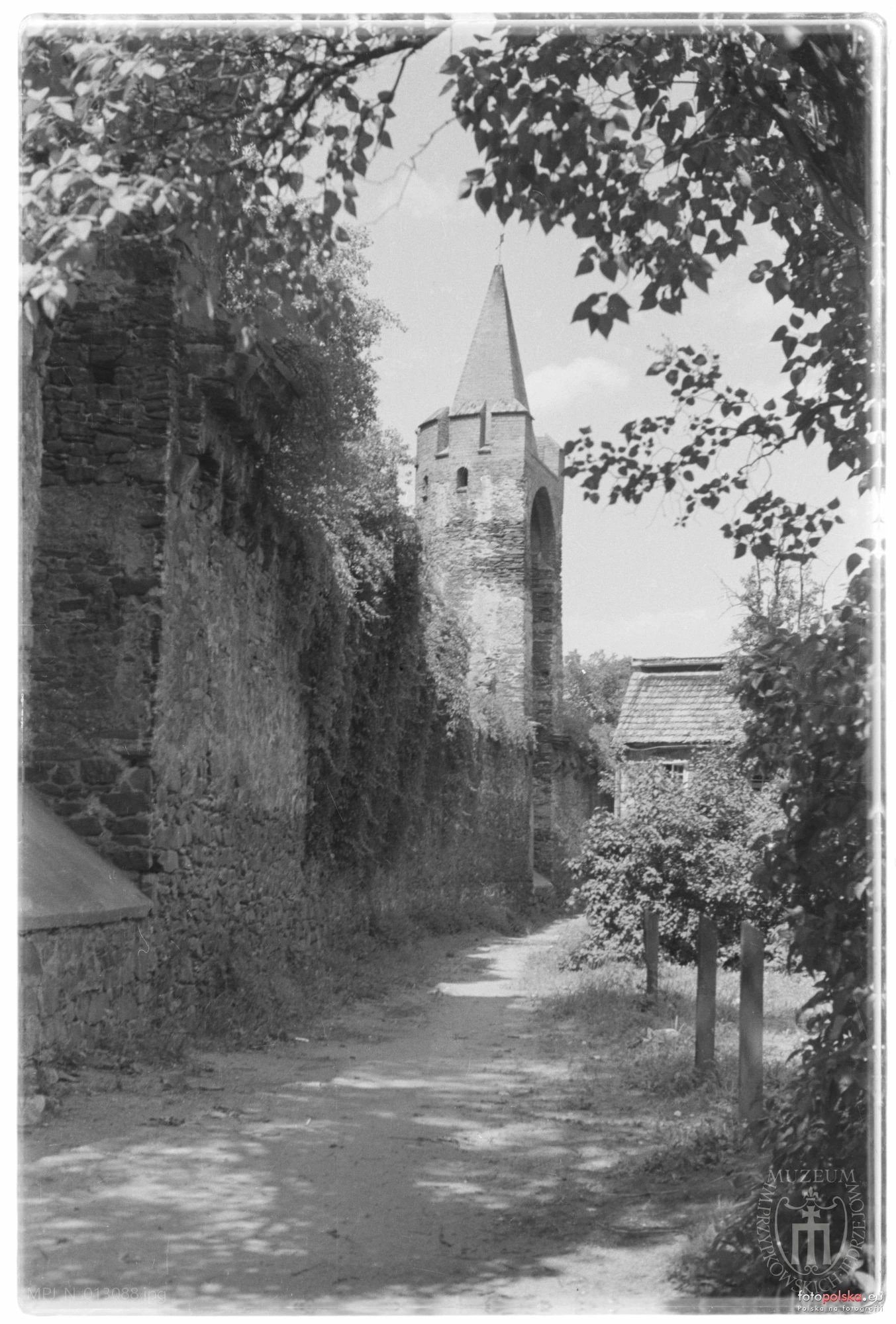 Lata 1946-1950 , Paczków, fragment murów miejskich z basztą łupinową.Skomentuj zdjęcie |