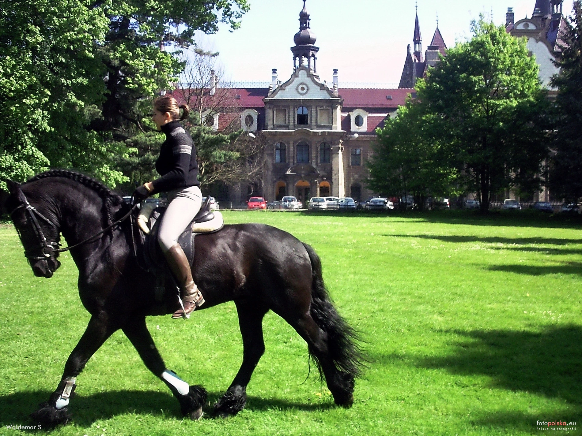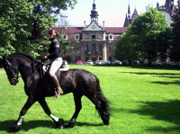 0 pobrań 485 odsłon 6 średnia ocen Poprzednie i następne zdjęcia Waldemar S Obiekty widoczne na zdjęciu Gazon więcej zdjęć (8) Atrakcja turystyczna Stadnina koni więcej zdjęć (63) W 1948 roku, w bezpośrednim sąsiedztwie Zamku w Mosznej, na terenie zabytkowego parku w otoczeniu azalii i rododendronów, z dala od wielkomiejskich ośrodków rozpoczęła się historia Stadniny Koni Moszna. W 1948 roku do zabytkowych zabudowań posiadłości hrabiego von Tiele-Winckler - przedwojennego właściciela Zamku w Mosznej - zostały przeniesione pierwsze 25 klaczy rasy pełnej krwi angielskiej. Ocalałe klacze pochodziły głównie z prywatnych hodowli prowadzonych w polskich majątkach przed II wojną na terenie wielkopolski i we wschodniej Polsce W zabudowaniach gospodarczych pałacu w Mosznej uratowane klacze znalazły idealne warunki do dalszej hodowli. Do roku 1961, obok stada klaczy pełnej krwi angielskiej (xx), Stadnina w Mosznej posiadała również klacze rasy "fiording" ( norweskie konie robocze ), które następnie zostały przeniesione do Stadniny w Nowielicach . W ramach wymiany za klacze fiordzkie z Nowielic, przyszły do Mosznej klacze ze znakiem Gryfa Pomorskiego, określone następnie mianem koni "szlachetnej półkrwi". Od tego czasu Stadnina w Mosznej rozpoczęła hodowlę koni szlachetnej półkrwi (sp) stając się pierwszym w Polsce ośrodkiem hodowli koni przeznaczonych do sportu wyczynowego. W pierwszej połowie lat dziewięćdziesiątych ówczesna Państwowa Stadnina Koni w Mosznej została przekształcona w spółkę z o.o. z jednoosobowym udziałem Skarbu Państwa a następnie w lutym 2001 roku Spółka została sprywatyzowana zachowując nazwę Stadnina Koni Moszna sp. z o.o. Aktualnie Stadnina Koni Moszna jest znanym w kraju i za granicą ośrodkiem hodowli koni sportowych. Urodzone w Mosznej konie pełnej krwi angielskiej (xx) odnoszą liczne sukcesy na torach wyścigowych w Polsce, Czechach, Włoszech i Anglii, mając na swoim koncie zwycięstwa w ponad 200 wyścigach imiennych w tym 5 razy w najważniejszej gonitwie sezonu - "DERBY" w Polsce i 2 razy w tej samej nagrodzie za granicą oraz wygraną w największej europejskiej gonitwie płotowej - „Wielka Pardubicka” - w 2009 roku. Wyhodowane w Mosznej konie szlachetnej półkrwi (sp.) startują w zawodach w konkurencji skoków, ujeżdżenia oraz WKKW, mając na swoim koncie takie sukcesy jak m.in. : wygrana w konkursie otwarcia Mistrzostw Świata w skokach przez przeszkody w Lipsku, zdobycie tytułu Najlepszego Konia próby terenowej w Finale Pucharu Świata w konkurencji WKKW w Malmo, udział w Igrzyskach olimpijskich 2008 w Pekinie w dyscyplinie ujeżdżenia i WKKW koni Randon i WAG. Aktualnie stado liczy ponad 180 szt. koni obu ras, w tym 30 matek rasy xx oraz 20 matek rasy sp. i około 35 koni sportowych biorących udział w zawodach. Nad całością hodowli formalną pieczę sprawuje Polski Związek Hodowców Koni oraz Polski Związek Hodowców Koni Pełnej Krwi Angielskiej, których to organizacji Stadnina jest aktywnym członkiem. Tereny użytkowane przez Stadninę obejmują ok.250 ha w skład których wchodzi zabytkowy park, pastwiska, łąki, stawy i grunty orne. Spółka mieści się w zabudowaniach należących do kompleksu pałacowo-parkowego z 1910 roku w których znajduje się również baza noclegowa na 30 miejsc. źródło : Zamek więcej zdjęć (414) Atrakcja turystyczna Zbudowano: XVII w. Dawniej: Centrum Terapii Nerwic, Wojewódzki Ośrodek Profilaktyczno-Sanatoryjny, Schloß Zabytek: 681/63 z 24-06-1963 Zamek w Mosznej, ufundowany przez Thiele-Wincklerów - jedną z najzamożniejszych śląskich rodzin, należy do najwspanialszych zabytkowych budowli na Opolszczyźnie. Odbudowany i rozbudowany został po pożarze, który wybuchł w nocy z 2 na 3 kwietnia 1896 r. (powiększony został w 1913 r). Duże zróżnicowanie kształtów i wysokości, zawiłość układu poszczególnych elementów architektonicznych, wreszcie całkowite zatarcie brył stanowiących korpus każdej z części zamku powoduje, iż trudno jest od razu pojąć koncepcję zawartą w owej budowli. Najciekawsze pomieszczenia w zamku to: reprezentacyjna klatka schodowa z krużgankiem w obecnej kawiarni (cały wystrój z sandałowego drewna), galeria, najbardziej imponujący "gabinet pana" (obecna biblioteka), a ponadto kaplica, salon "pod pawiem", sala myśliwska, stylowe apartamenty - czarny i biały, jadalnia, palmiarnia. Wszystkie te pomieszczenia służą kuracjuszom, niektóre z nich udostępniane są również do zwiedzania. Zamek posiada ogółem 365 pomieszczeń i 99 wież i wieżyczek. Powierzchnia wynosi 7 tys. m2, kubatura - 65 tys. m3. Początki tej budowli to prawdopodobnie połowa wieku XVII. Najstarsza część zamku w Mosznej jest odbudowanym pałacykiem o barokowych XVIII - wiecznych formach. Dwa boczne skrzydła powstały później. Plan zamku układa się w nieregularny kształt litery U, przy czym skrzydła boczne, dołączone od wschodu i zachodu do środkowej części pałacu, głęboko wchodzą w stronę parku, ujmując z obu stron taras z ozdobną balustradą i reprezentacyjnymi lustrzanymi schodami. Część środkowa, to dawny pałac barokowy, który w roku 1896 prawie doszczętnie spłonął. W tym samym roku odbudowany w pierwotnym kształcie. Do roku 1900 powstała najbardziej okazała część wschodnia, a w latach 1912-14 dobudowane zostało skrzydło zachodnie. Po wojnie użytkowały go różne instytucje, aż do 1972 roku, kiedy w zamku zorganizowany został Wojewódzki Ośrodek Profilaktyczno-Sanatoryjny. Do kwietnia 2013 roku w zamku mieściło się Centrum Terapii Nerwic, które zostało przeniesione do nowego obiektu wybudowanego nieopodal. Część wnętrz zamku udostępniona jest zwiedzającym. Zamek oferuje również miejsca noclegowe w pięknych zabytkowych wnętrzach. Do dyspozycji gości przeznaczone są pokoje oraz apartamenty z osobną łazienką oraz apartament 5 osobowy