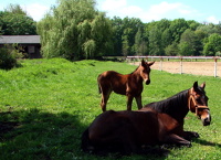 8 maja 2012 , Moszna, Stadnina koni. Padok I. Fragment padoku, widok w kierunku zabudowań gospodarczych stadniny koni.Skomentuj zdjęcie |