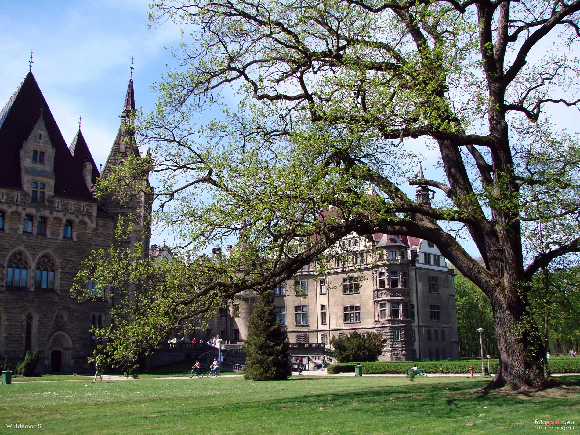 29 kwietnia 2012 , Moszna, Zamek. Park. Fragment parku przypałacowego, w tle fragment pałacu.Skomentuj zdjęcie |