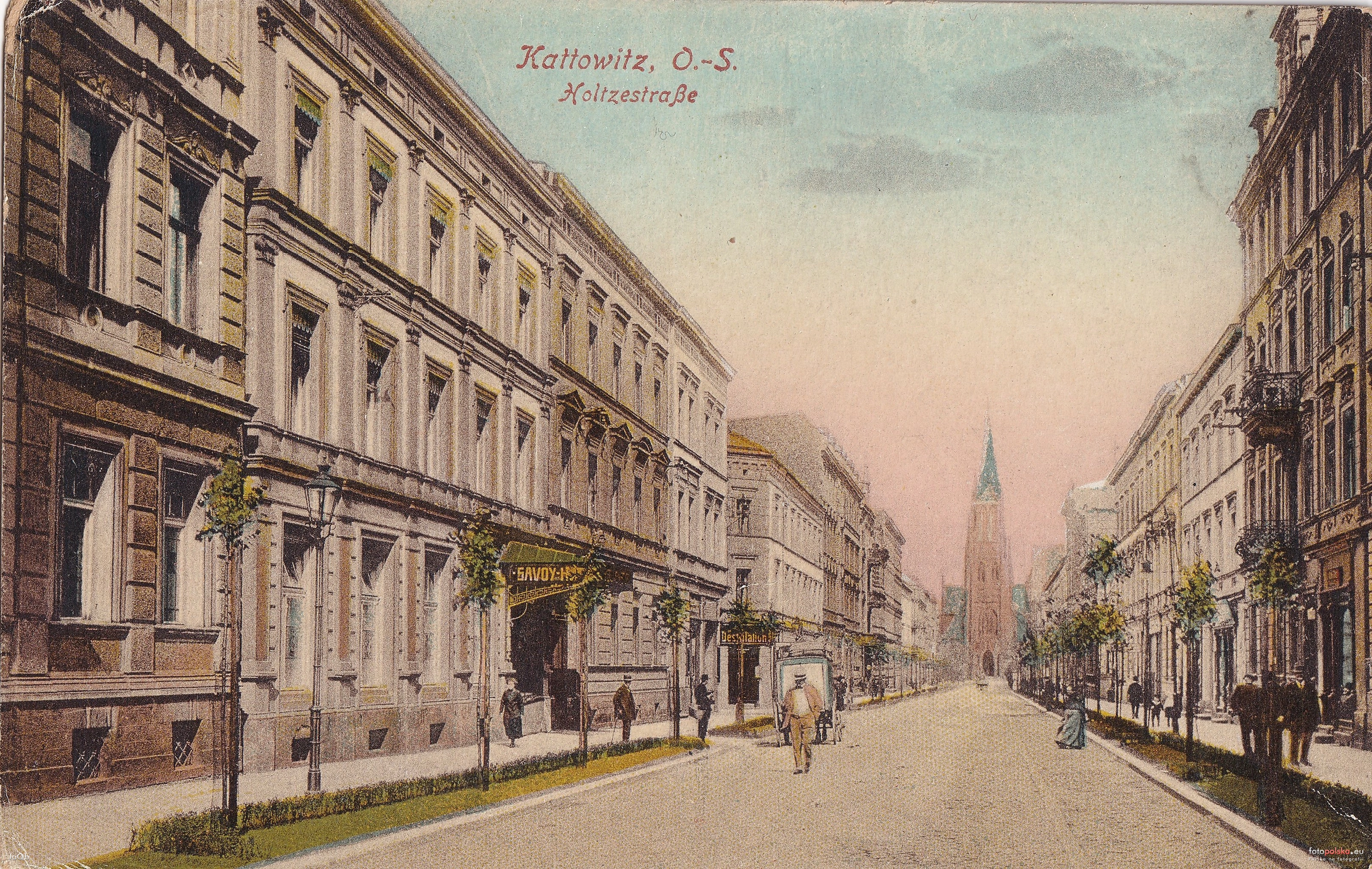 4 pobrania 491 odsłon 6 średnia ocen Poprzednie i następne zdjęcia Ja_Q_b Obiekty widoczne na zdjęciu ul. Mariacka więcej zdjęć (744) Dawniej: Holtze Strasse Ulica Mariacka została zabudowana w drugiej połowie XIX wieku według planu Nepilly'ego z 1875 (blok zamknięty ulic na wschód od Rynku). W 1876 ulicy nadano nazwę Richard Holtzestraße na cześć, obchodzącego wtedy dwudziestopięciolecie pracy jako lekarz, Richarda Holtzego − przewodniczącego ówczesnej Rady Miejskiej Katowic. Nazwa ta obowiązywała do 1922, oraz w latach niemieckiej okupacji Polski (1939−1945). Pod koniec XIX wieku przy ulicy działała restauracja Kasulke[7]. 27 stycznia 1901 w domu przy Holtzestraße 18 urodził się Willy Fritsch − jedna z najważniejszych gwiazd dawnego kina niemieckiego. Przed I wojną światową pod numerem 4−6 założono hotel Savoy; istniał do 1939; w okresie międzywojennym należał do A. Czaplickiego. W restauracji hotelu dnia 20 czerwca 1922 na uroczystym śniadaniu spotkali się Wojciech Korfanty i Józef Rymer ze Stanisławem Szeptyckim. W dwudziestoleciu międzywojennycm przy ulicy swoją siedzibę miały: Bank Śląski - Banque de Silésie SA (oddział, pod numerem 24), hotel Europejski (wzniesiony w latach 1930−1931 przy ul. Mariackiej 15), restauracja Kessel Juliusza Grundmanna (pod numerem 27), restauracja Józefa Adamaszka (pod numerem 24), cukiernia Astoria Walentego Rybki (ul. Mariacka 1), oddział towarzystwa ubezpieczeniowego Kotwica (pod numerem 3). Około 1926 pod numerem 2 działalność prowadził Bank Dewizowy, pod numerem 12 − Górnośląski Bank Związkowy, pod numerem 17 − Ogólna Spółka Rewizyjna i Powiernicza Vera. Przed II wojną światową przy ul. Mariackiej 5 założono Dom Techniczno-Handlowy Industria Ludwika Żmigroda. W latach 1925−1926 pod numerem 13 znajdował się konsulat Brazylii i redakcja oddziału Ilustrowanego Kuriera Codziennego, pod numerem 14 − biuro "Polskiego Kolejarza Górnośląskiego". Na rogu ul. Mariackiej, obok Astorii, zlokalizowany był początkowy przystanek linii atobusowej Katowice −Sosnowiec, uruchomionej we wrześniu 1925. W dwudziestoleciu międzywojennym ulica Mariacka znana była z dużej ilości pracujących tu prostytutek, w szczególności po zlokalizowaniu na rogu z ul. Stanisława Hotelu Europejskiego, gdzie często wyczekiwały na klientów. Kwartał ulic: św. Jana, Dworcowa, Mariacka, Andrzeja Mielęckiego, Stanisława i Starowiejska w zamyśle władz Katowic ma się stać tzw. "małym rynkiem". Pierwszym krokiem była organizacja konkursu na opracowanie koncepcji programowo-przestrzennej, urbanistyczno-architektonicznej zagospodarowania ulic św. Jana, Dworcowej, Mariackiej oraz Andrzeja Mielęckiego, Stanisława i Starowiejskiej w 2005, który wygrało konsorcjum Autorska Pracownia Architektury Kuryłowicz & Associates i Biuro Autorskie "A i R" Jurkowscy Architekci, min. za "dwustronne obsadzenie drzewami ulicy Mariackiej odtwarza jej pierwotny charakter alei ulicznej zamkniętej widokiem kościoła NMP". Remont ulicy Mariackiej przeprowadzono w 2008; koszt przebudowy wyniósł około 12 milionów złotych. W dniach 4−26 lipca 2009 na ulicy Mariackiej odbył się cykl imprez Letnie Granie na Mariackiej. 22 września 2009[21] rozpoczął działalność portal internetowy, poświęcony ulicy − Mariacka.eu. Znajdujące się na tej ulicy nowoczesne ławki i stół Elipse, projektu Macieja Rutkowskiego, zostały nagrodzone w konkursie Śląska Rzecz (2009). Dnia 6 września 2010 odbyła się impreza Mariacka.OPEN[22], w dniach 8−17 września 2010 na deptaku znajdował się "Jarmark Katowicki", promujący miasto i sam deptak; 18 i 19 września 2010 na ulicy Mariackiej odbyły się koncerty bluesowe, a 21 września 2010 otwaro wystawę "Katowickie Synagogi", prezentująca materiały archiwalne dotyczące katowickiej synagogi, pochodzące z archiwum Urzędu Miasta Katowice. Od 2009 na ulicy Mariackiej cyklicznie odbywa się szereg imprez plenerowych i koncertów oraz wydarzeń kulturalnych. Pod koniec 2010 kamienicę na rogu ul. Francuskiej i ul. Mariackiej wyburzono. 27 marca 2011 na ul. Mariackiej odbył się koncert "Solidarni z Białorusią", zorganizowany przez Stowarzyszenie Inicjatywa Wolna Białoruś. Pod koniec kwietnia 2011 na deptaku zasadzono trzydzieści ozdobnych drzewek wiśni piłkowanej rozpoczęto także naprawę odcinka od skrzyżowania z ul. Francuską do Kościoła Mariackiego (koszt naprawy szacowany jest na milion złotych, trwała do czerwca 2011; w 2010 ta część deptaku została uszkodzona przez betoniarkę) |