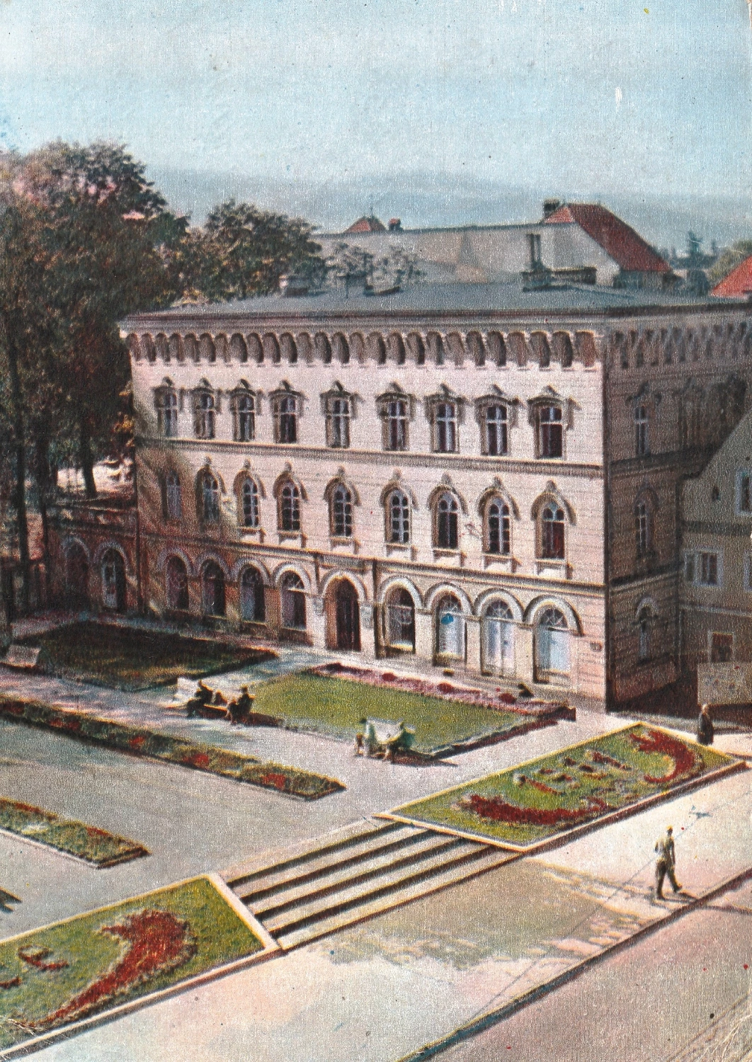 Pawilon uzdrowiskowy "Lalka" więcej zdjęć (91) Zbudowano: ok. 1900 Dawniej: Haus "Bazar"; Hotel Zdrojowy Dom gościnny i handlowy Bazar przy promenadzie, ob. sanatorium Lalka, pl. Piastowski 29 . Położony przy głównym wejściu na teren parku zdrojowego, zwrócony fasadą w stronę promenady, elewacją północną w stronę pl. Piastowskiego. Wzniesiony około 1900. Murowany, tynkowany, czterokondygnacyjny, nakryty niskim, czterospadowym dachem. Kapitalny remont przeprowadzono w latach dziewięćdziesiątych XX w. pl. Piastowski więcej zdjęć (2804) Dawniej: Hirschbergerstrasse, Schlossplatz (pl. Zamkowy) Ulica stanowiąca trzon układu urbanistycznego Cieplic. Jej zabudowę zapoczątkowało wzniesienie w XVI lub XVII w. renesansowego pałacu Schaffgotschów. Przed fasadą pałacu założono plac zamkowy (Schlossplatz) z szpalerem drzew (ob. środkowa część ulicy Piastowskiej). Ulica spełniała wówczas funkcję drogi komunikacyjnej między Cieplicami a Sobieszowem, gdzie znajdował się zamek Chojnik i ordynacja majątku Schaffgotschów. W 4 ćw. XVIII w. w związku z rozbudową pałacu w Cieplicach do obecnych rozmiarów dużej rezydencji, powstał nowy plac zamkowy, który dał początek kolejnemu etapowi rozwoju przestrzennego ulicy. Około połowy XVIII w., przy środkowej części dzisiejszej ulicy, założono zespół kościoła ewangelickiego. Gdy w latach 1781 1783 pomiędzy wsią Malinnik a Cieplicami wytyczono nową drogę do Jeleniej Góry (ob. ul. Wolności), prowadzący do niej plac Piastowski przejął funkcję głównego traktu komunikacyjnego Cieplic. Rozpoczęto zabudowywanie obu pierzei ulicy w kierunku wschodnim. Powstawały tam głównie zajazdy i hotele, początkowo (XVIII/XIX w.) jednokondygnacyjne wykonane z drewna i konstrukcji ryglowej, w drugiej połowie XIX w. i na początku XX w. zastąpione budynkami murowanymi dwu— i trzykondygnacyjnymi. Zabudowa starszej, zachodniej i środkowej części ulicy (vis a vis pałacu Schaffgotschów i zespołu kościoła ewangelickiego) pochodzi głównie z XVIII w. z późniejszymi przebudowami. Charakter zabudowy pl. Piastowskiego, obecnie typu miejskiego (XVIII i XIX w.); mieszany pod względem zarówno zwartości zabudowy ulicy jak i wysokości budynków, z przewagą dwu i trzykondygnacyjnych. Są to dawne pensjonaty, zajazdy, hotele oraz budynki użyteczności publicznej (m. in. poczta, urzędy), w części także kamienice mieszkalne. Studium historyczno - urbanistyczne 2002 |
