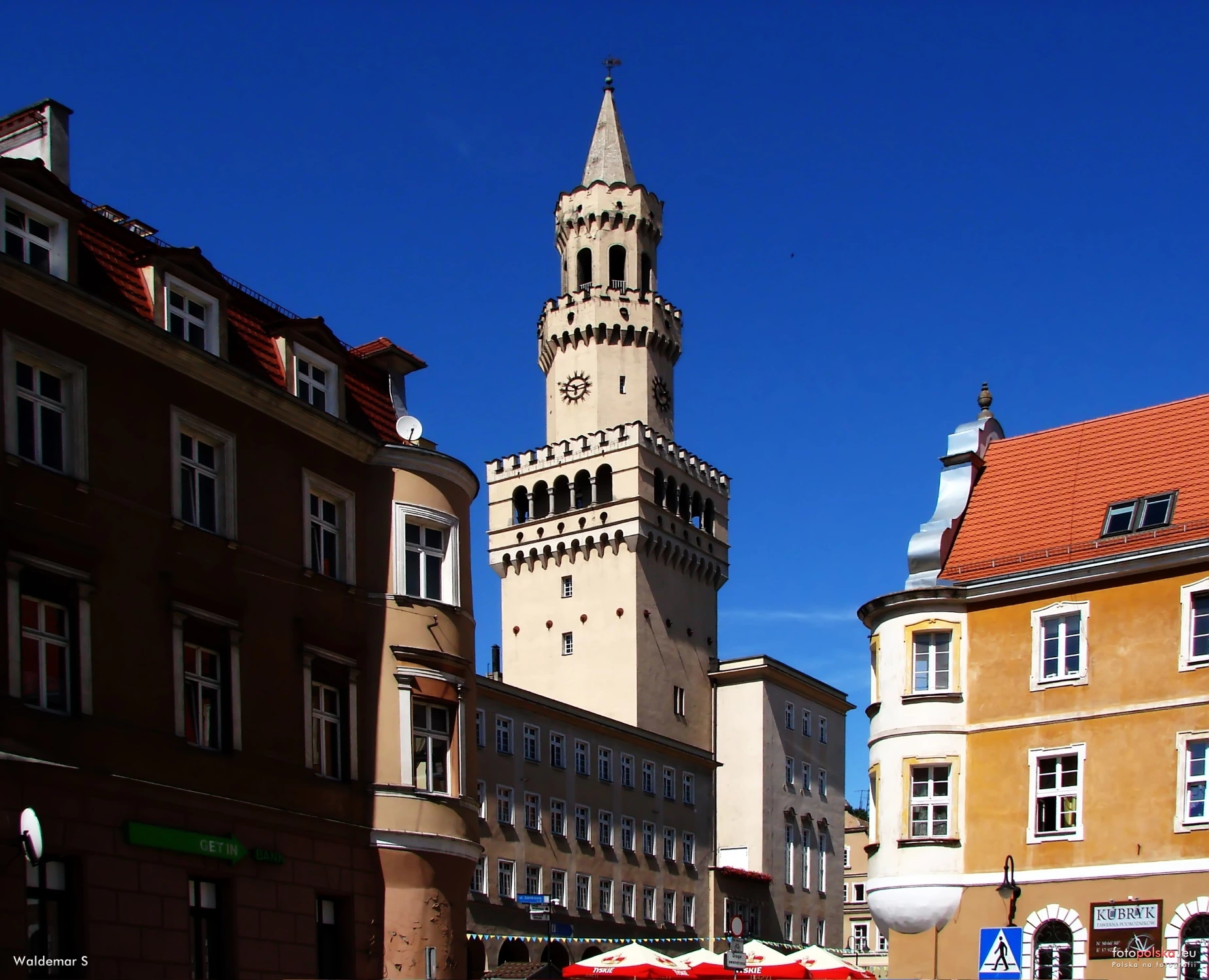 1 pobranie 809 odsłon 6 średnia ocen Poprzednie i następne zdjęcia Waldemar S Obiekty widoczne na zdjęciu Ratusz więcej zdjęć (461) Atrakcja turystyczna Zbudowano: 1864, 1936 Dawniej: Rathaus Opolski ratusz był drewnianym domem kupieckim do XIV wieku, kiedy to został przemianowany na siedzibę władz miejskich i przebudowany przy użyciu cegieł. Kupieckie kramy przeniosły się wówczas na zewnątrz, do przybudówek zasłaniających ścianę zachodnią ratusza. W dawnych wiekach właśnie przed ratuszem koncentrowało się życie handlowo - rozrywkowe miasta. Odbywały się tu wielkie doroczne jarmarki. W XVIII wieku przed głównym wejściem stał pręgierz miejski do wymierzania kar ustanowionych wyrokiem sądu wójtowskiego. W 1794 roku został tu publicznie wychłostany i wypędzony z miasta buntownik chłopski- Marek z Jemielnicy. Opolski ratusz, podobnie zresztą jak i całe miasto, płonął wiele razy. Z jednym z pożarów wiąże się pewna ciekawostka. Otóż w 1818 roku podczas remontu głowicy wieży znaleziono w jej kopule medalion z informacją o tragicznym roku 1736, w którym dotknęły opolan dwie klęski- wody i głodu. Rewers medalionu przedstawiał deszcz i napis "O jak dużo! Śląska klęska powodziowa- 1736", zaś na awersie- stodoła ze snopkami i małą ilością ziarna oraz napis: "O jak mało! Śląska klęska głodu- 1736". Do gmachu prowadziły dwa wejścia; obydwa znajdowały się w tych samych miejscach, co dziś. Wejście główne, od strony wschodniej, oraz drugie- od strony północnej, które dziś służy przede wszystkim młodym parom, zawierającym związek małżeński w opolskim Urzędzie Stanu Cywilnego. Dzisiejszy kształt architektoniczny ratusza pochodzi z roku 1936. Warto bowiem wiedzieć, że w 1933 roku władze miejskie zdecydowały się wyburzyć szpecące Rynek kramy. Kiedy jednak przystąpiono do ich rozbiórki, mocno nadwerężona zachodnia ściana wieży, zawaliła się. Rynek więcej zdjęć (1733) Dawniej: Ring |