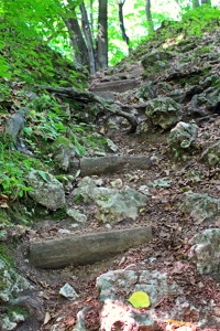 30 lipca 2015 , Fragment schodów (wykonanych z podkładów kolejowych) prowadzących na Skałkę Ostrężnik.Skomentuj zdjęcie |
