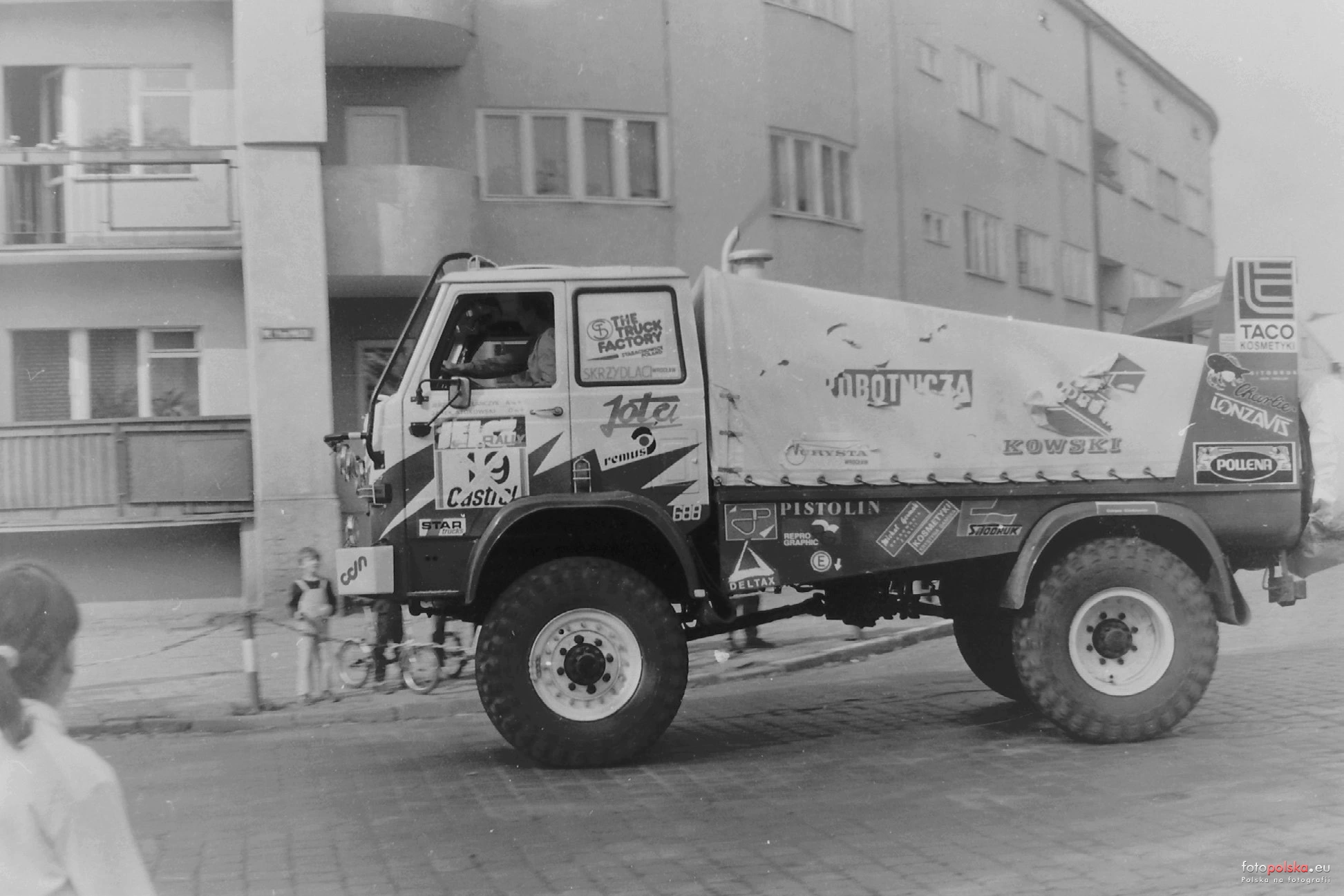Lata 1986-1990 , Rajd samochodów ciężarowych. Przejazd przez Strzelin. Album : Zbigniew Kazimierowicz.Skomentuj zdjęcie