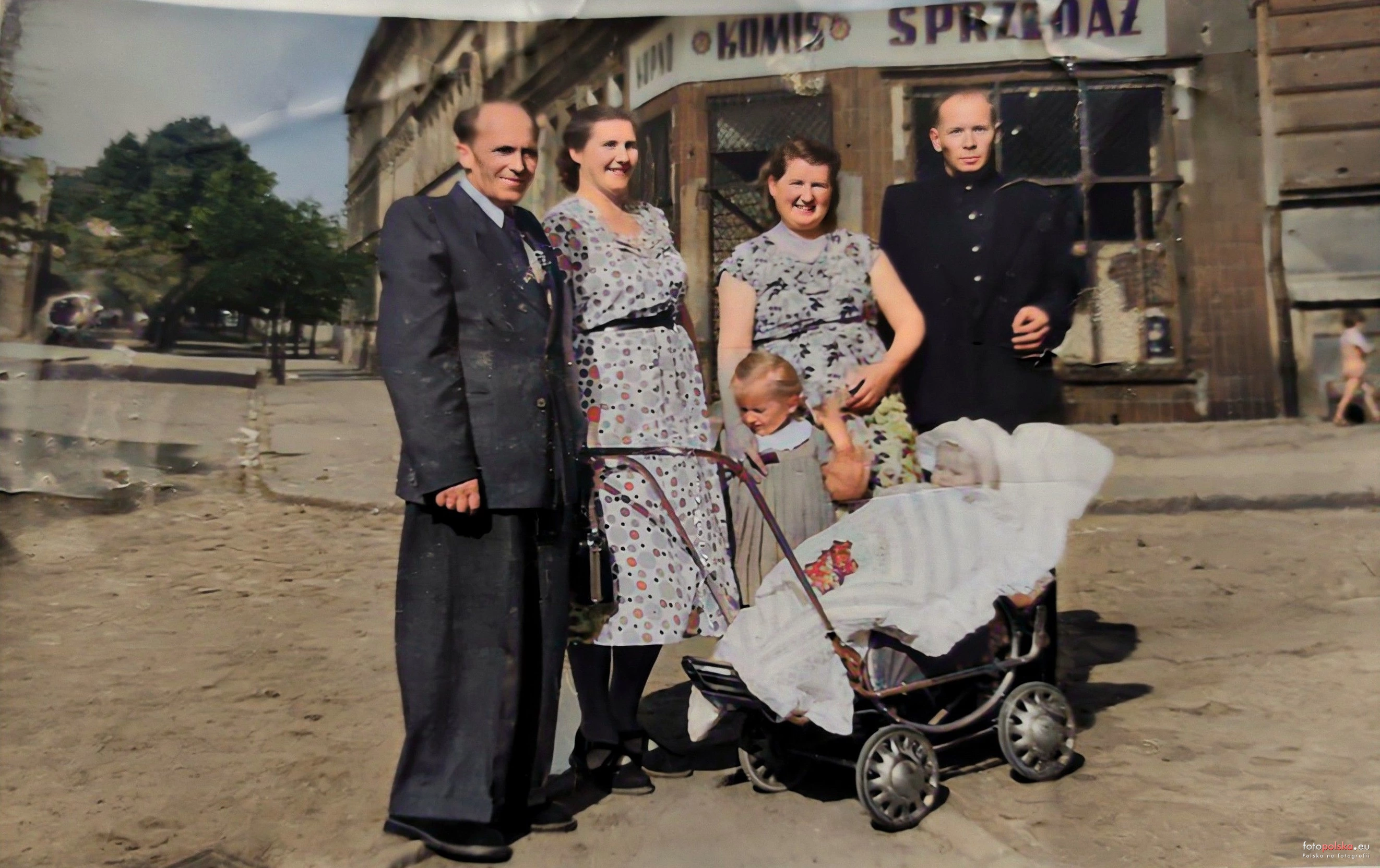1956 , Skrzyżowanie ul Konopnickiej i Słowackiego. Na zdjęciu Stefan i Michalina Dudzikowie z córkami, dziadek Stefan pierwszy od lewej, babcia Misia trzecia od lewej. Zdjęcie pochodzi ze zbiorów Pani Karoliny Pilińskiej.Skomentuj zdjęcie