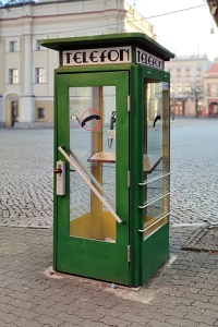 15 lutego 2023 , Retro-budka telefoniczna na leszczyńskim Rynku.Skomentuj zdjęcie