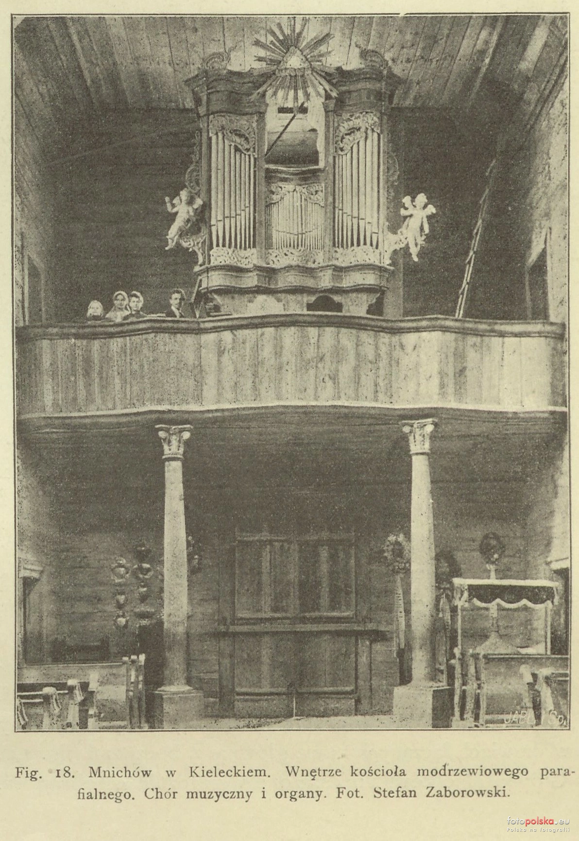 Lata 1910-1912 , Chór z organami. Źródło: Kościoły w Tomaszowie i Mnichowie : przyczynek do historyi budownictwa drewnianego w epoce barokowej, A.Szyszko-Bohusz, 1912.Skomentuj zdjęcie |