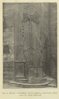 Lata 1910-1912 , Konfesjonał. Źródło: Kościoły w Tomaszowie i Mnichowie : przyczynek do historyi budownictwa drewnianego w epoce barokowej, A.Szyszko-Bohusz, 1912.Skomentuj zdjęcie |