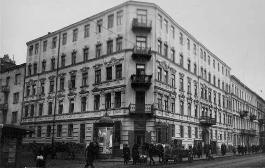 1938 , Kamienica na rogu Żelaznej i Ceglanej (dziś Pereca).Skomentuj zdjęcie |