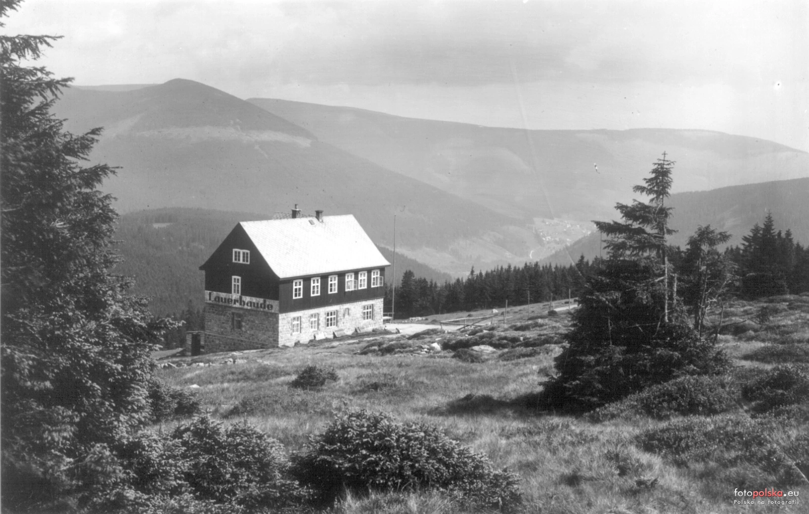 Lata 1920-1930 , Schronisko Lauerbaude (1220 m) wchodzące w skład kompleksu budynków Bradlerbaude, koło Spindlermühle.Skomentuj zdjęcie