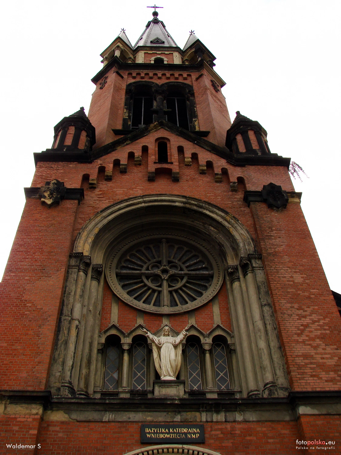 6 lipca 2016 , Bazylika Katedralna Wniebowzięcia NMP w Sosnowcu. Zbliżenie w kierunku zwieńczenia wieży Bazyliki.Skomentuj zdjęcie |