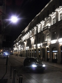 1 stycznia 2017 , Ul. Próżna pierzeja południowa, ujęcie od strony pl. Grzybowskiego ku ul. Zielnej. Po prawej Le Palai- kompleks kamienic pod nr. 7-9 (Zalmana Nożyka), obecnie zespół budynków biurowych i Restauracji Strefa.Skomentuj zdjęcie |