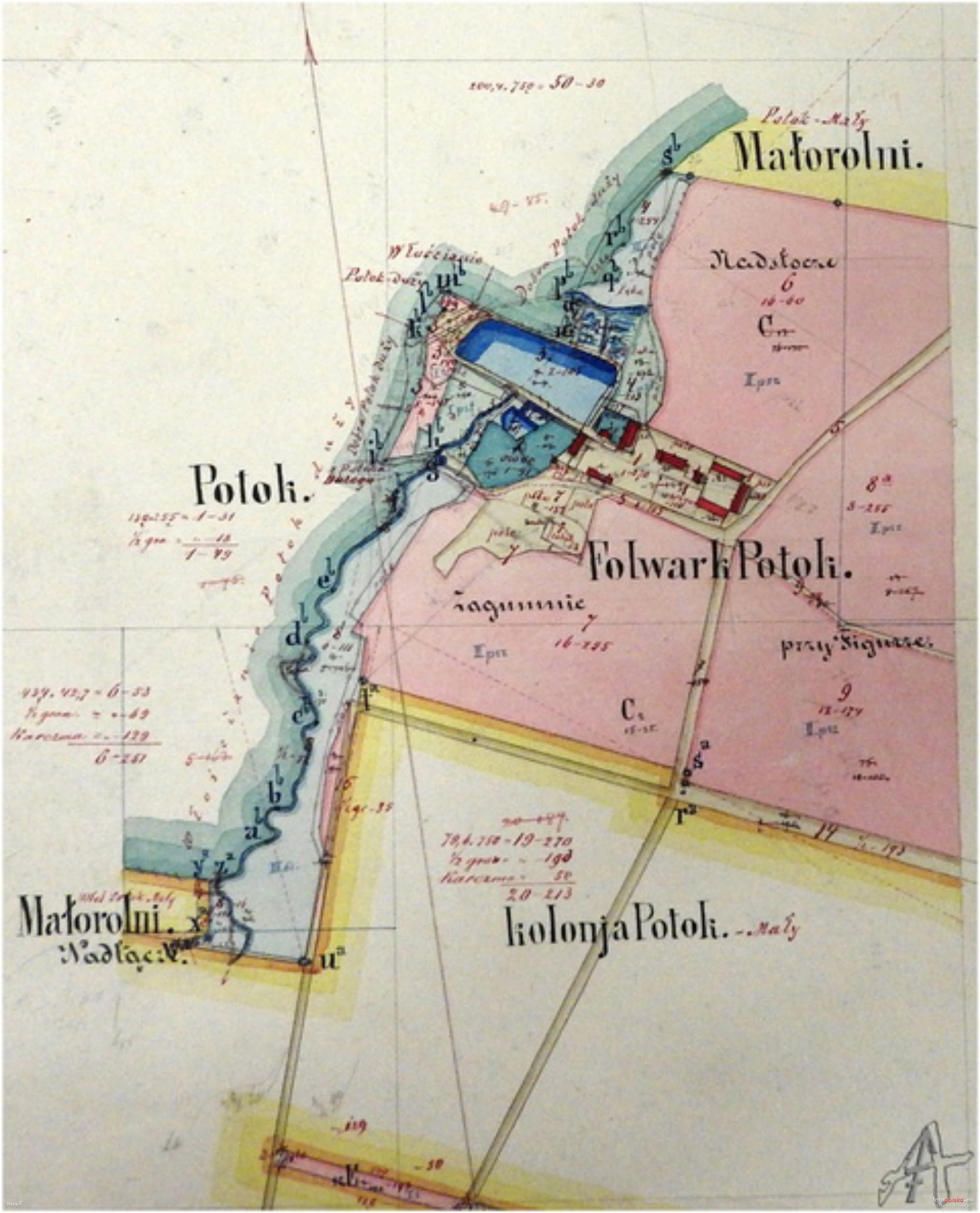 Lata 1850-1900 , Wieś Potok. Mapa dóbr folwarku Potok z lat 1850-1900 andreovia.plSkomentuj zdjęcie